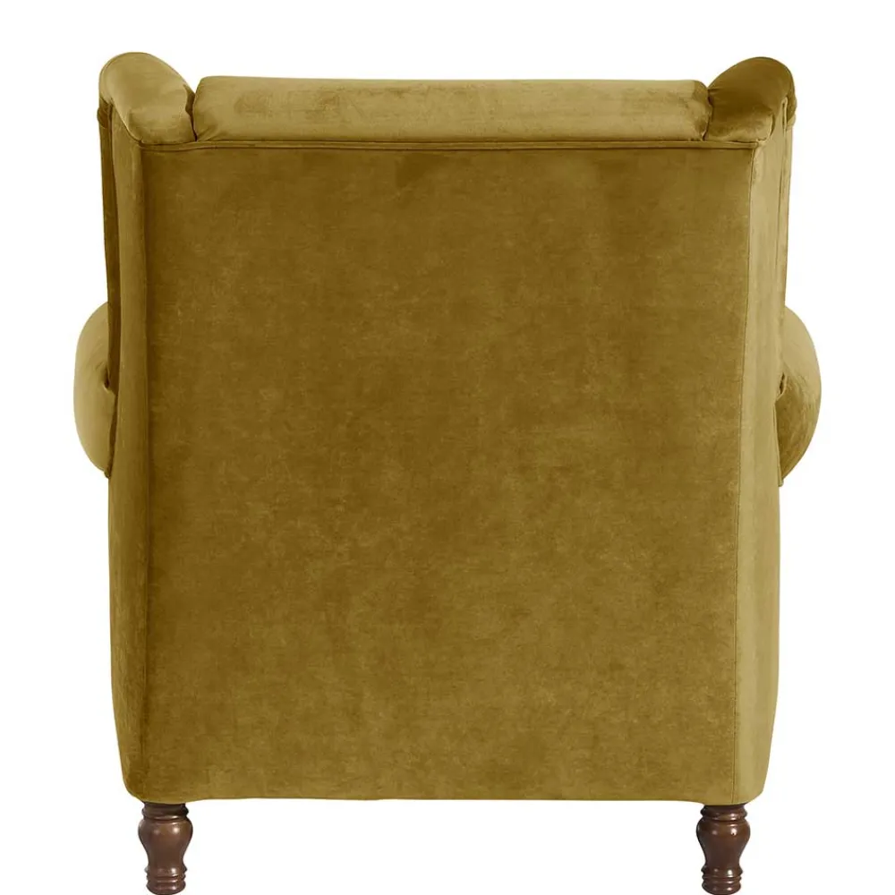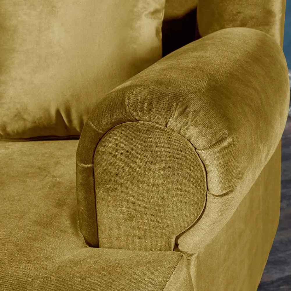 - Aparter Big Sessel in Gelb und Nussbaumfarben