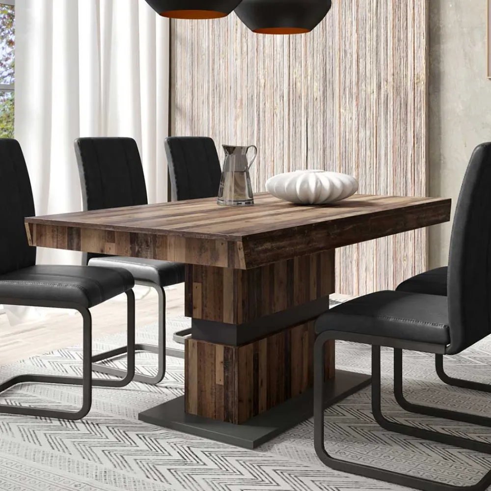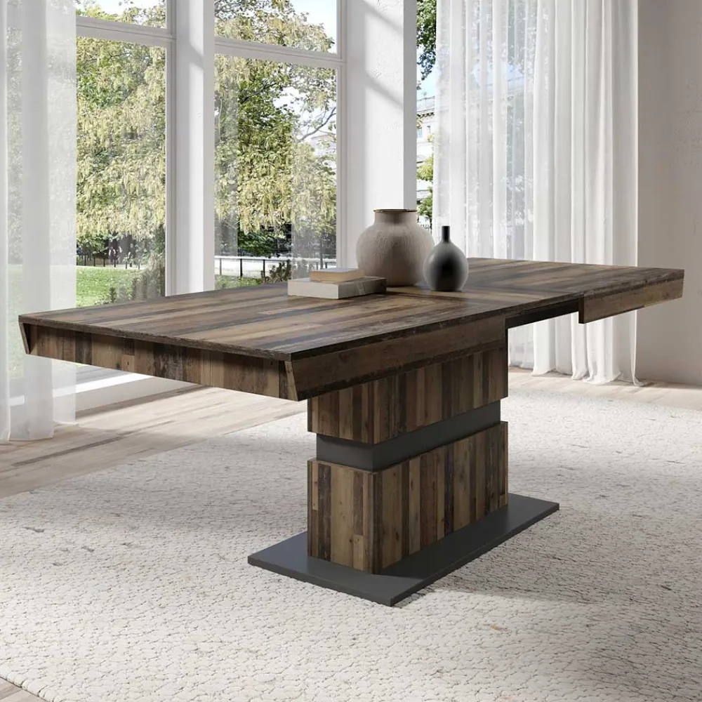 - Beeindruckender Esstisch in Altholzoptik und Dunkelgrau