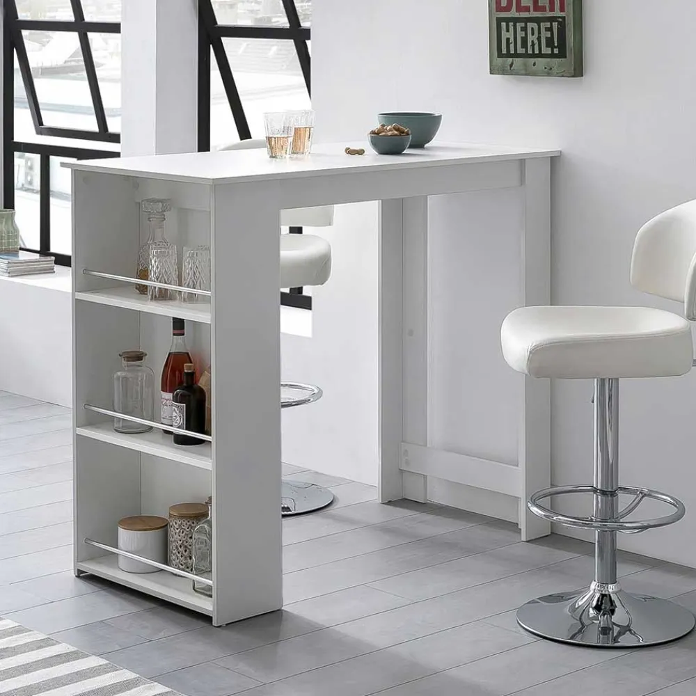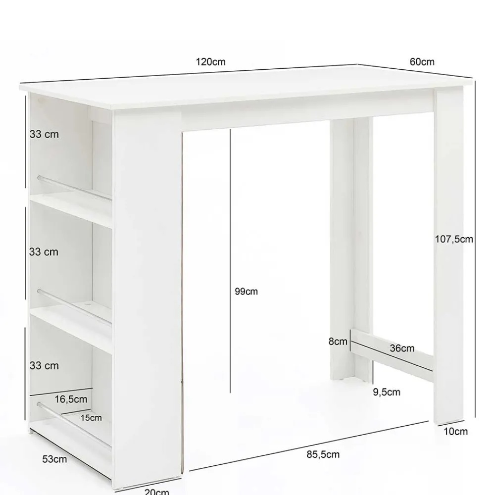 - Seitlich drei praktische Regalfächer mit Metallreling