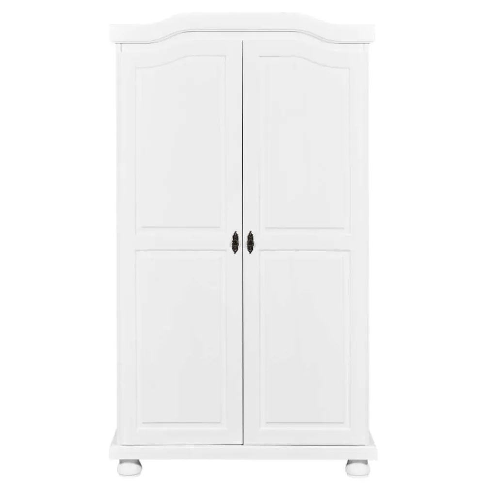 - Innen rechts ein Einlegeboden und eine Kleiderstange, links drei Einlegeböden