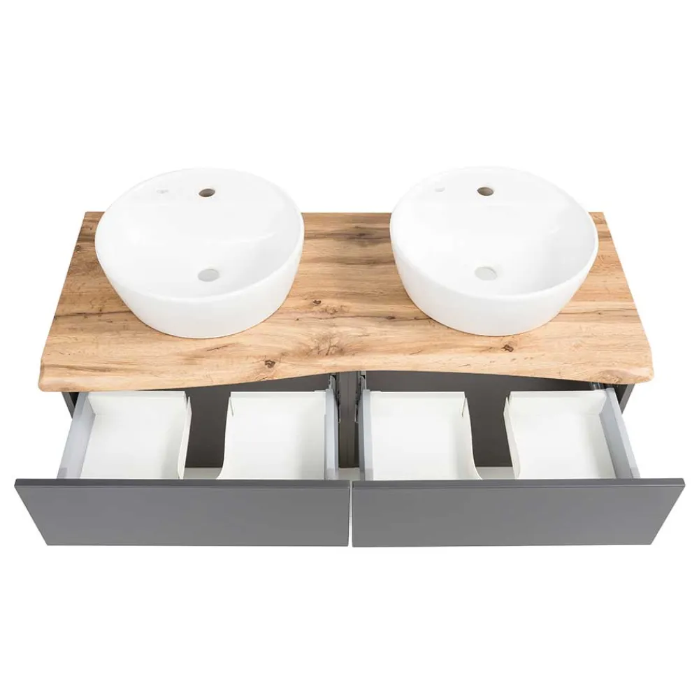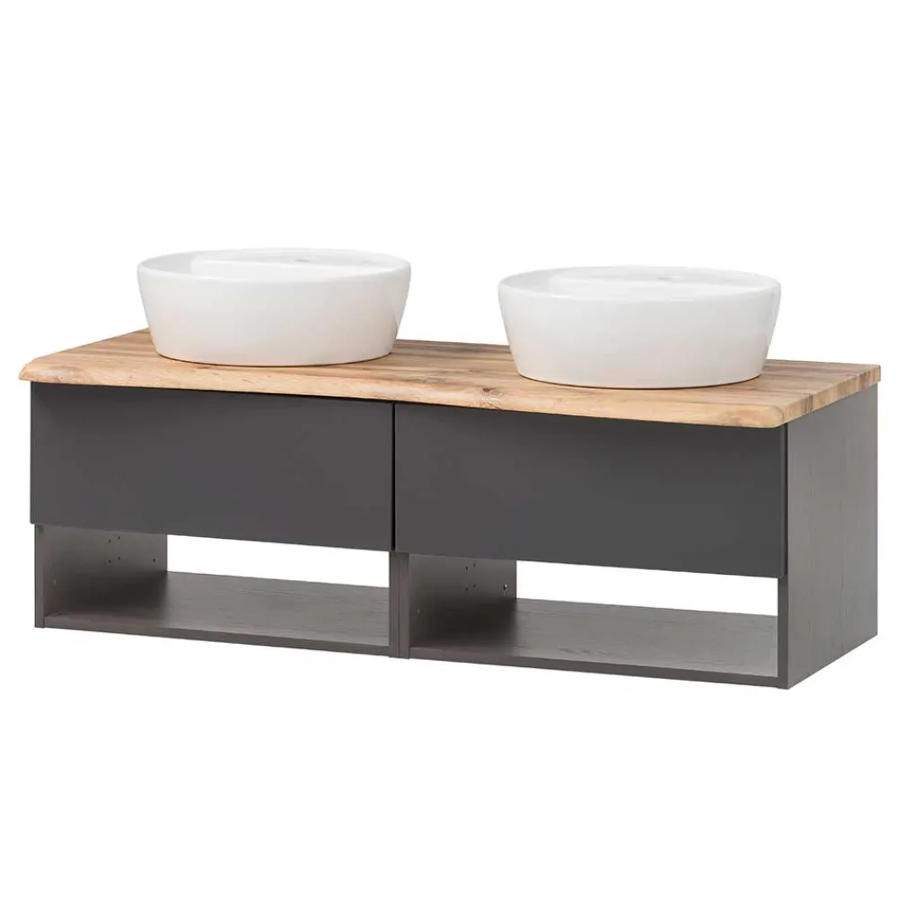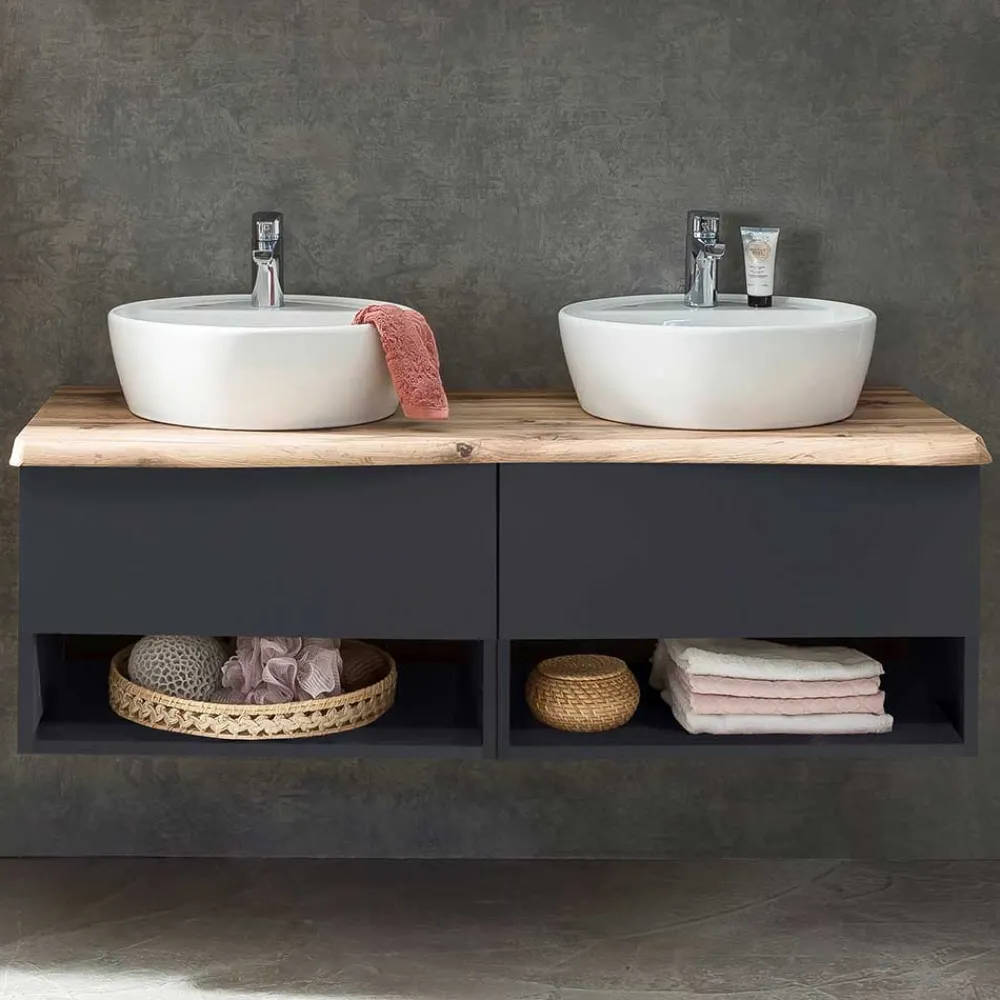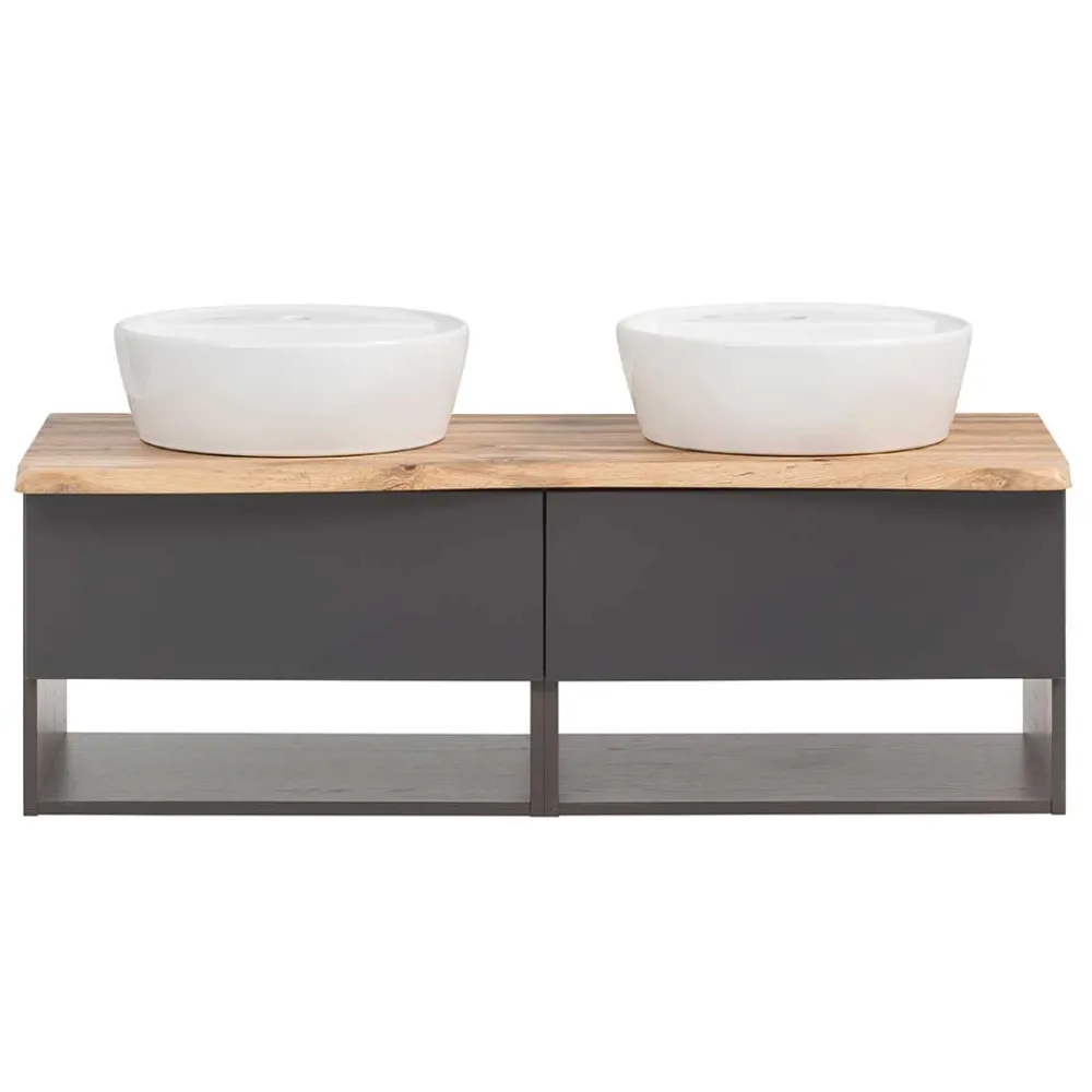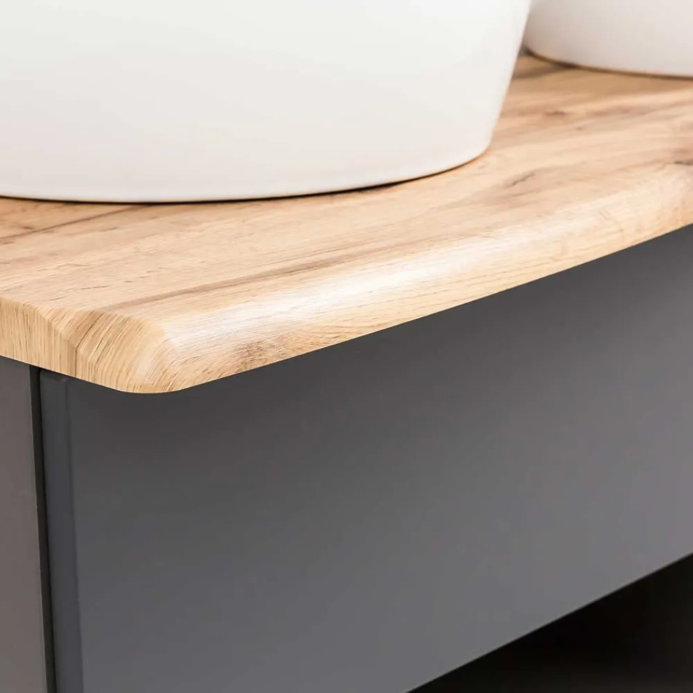 - Doppel-Waschtisch in Dunkelgrau und Wildeichefarben mit Baumkante