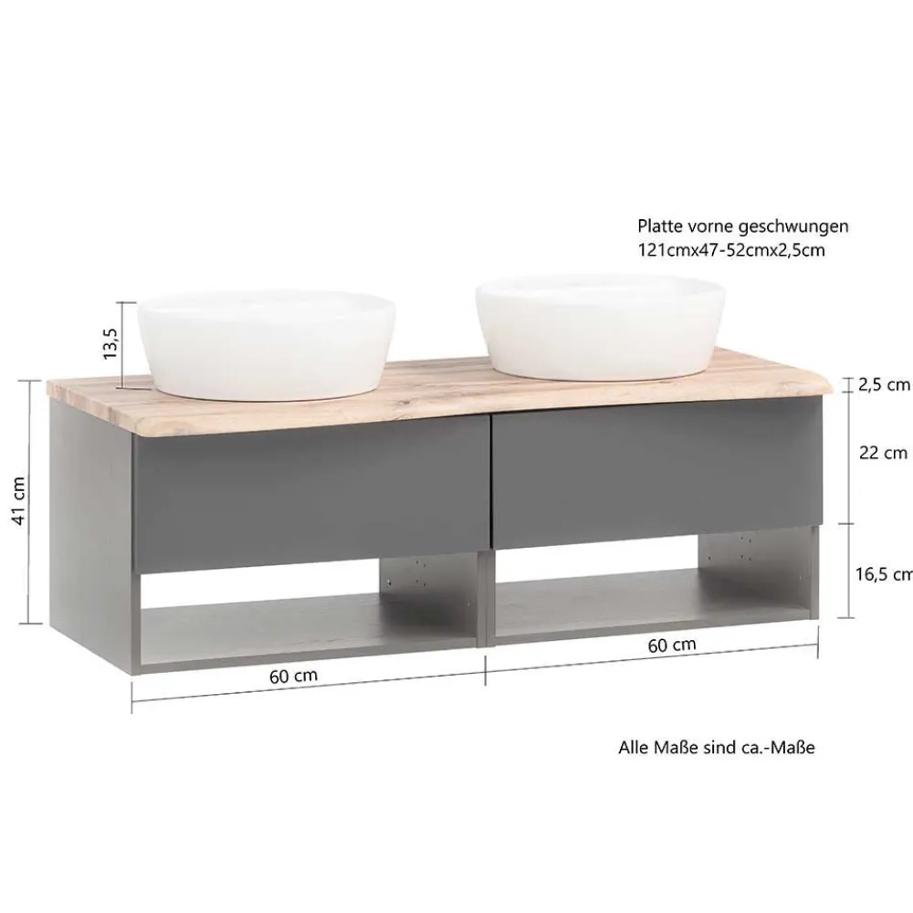 - Höhe Korpus ohne Waschbecken: 41 cm, Tiefe ohne Deckplattenüberstand: 47 cm