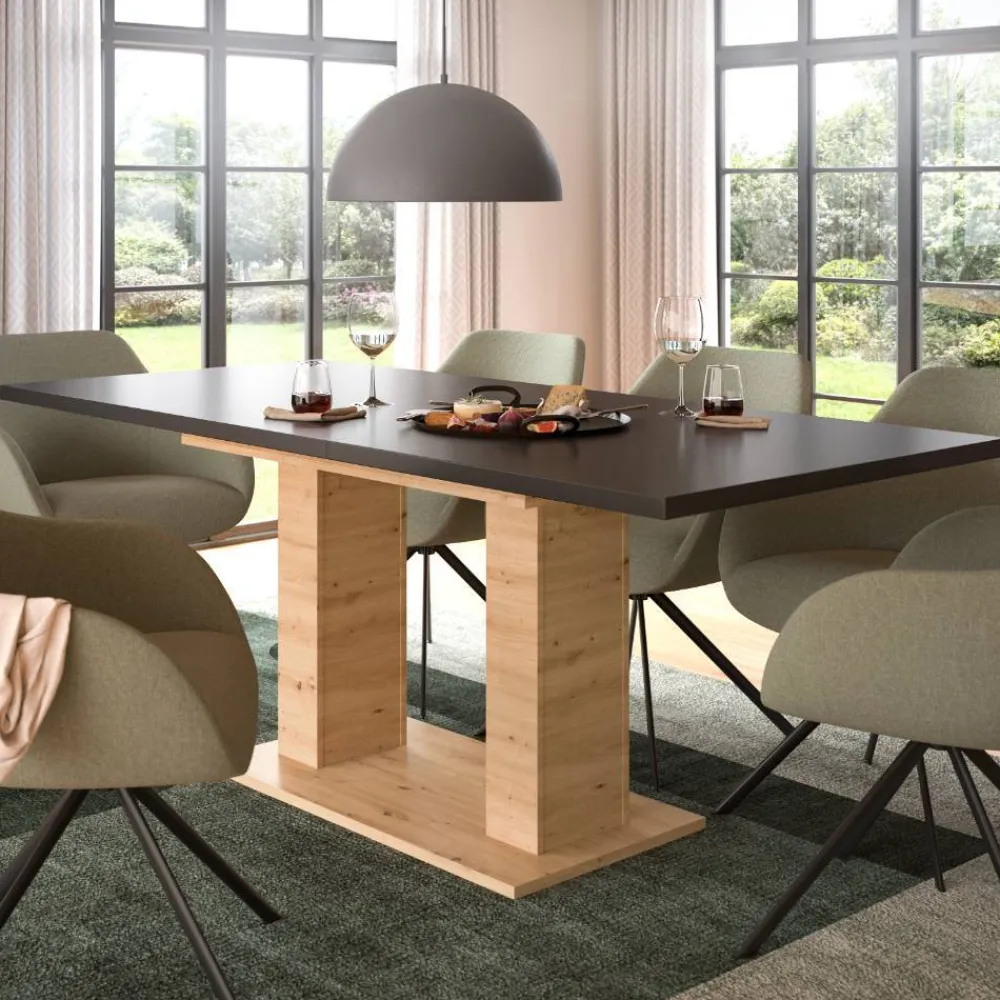 - Ansprechender Esstisch in Grau und Wildeiche Holzoptik