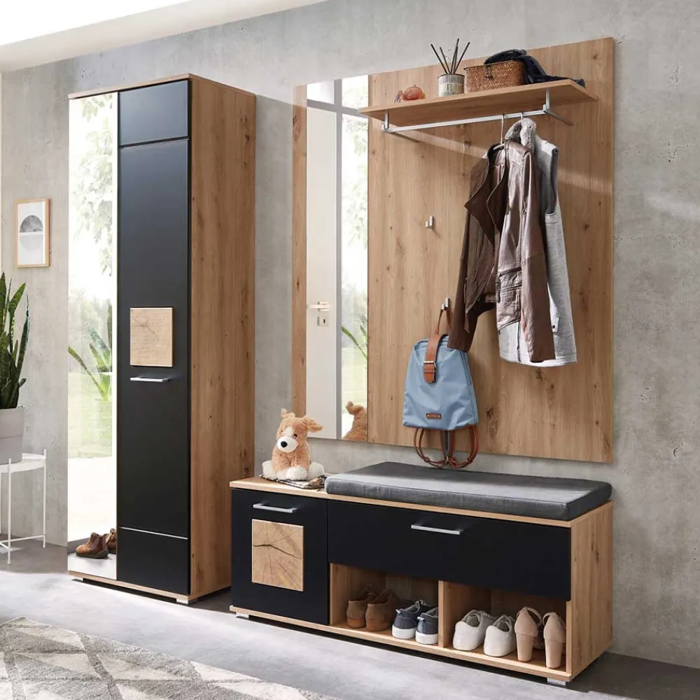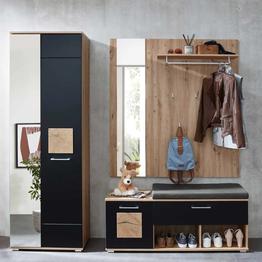- Trendstarke Garderobenmöbel in Schwarz matt und Wildeichefarben