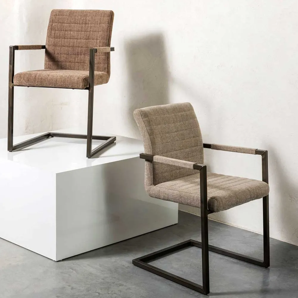 - Kantige Metall-Armlehnen mit einer Breite von ca. 2,5 cm, teils bezogen