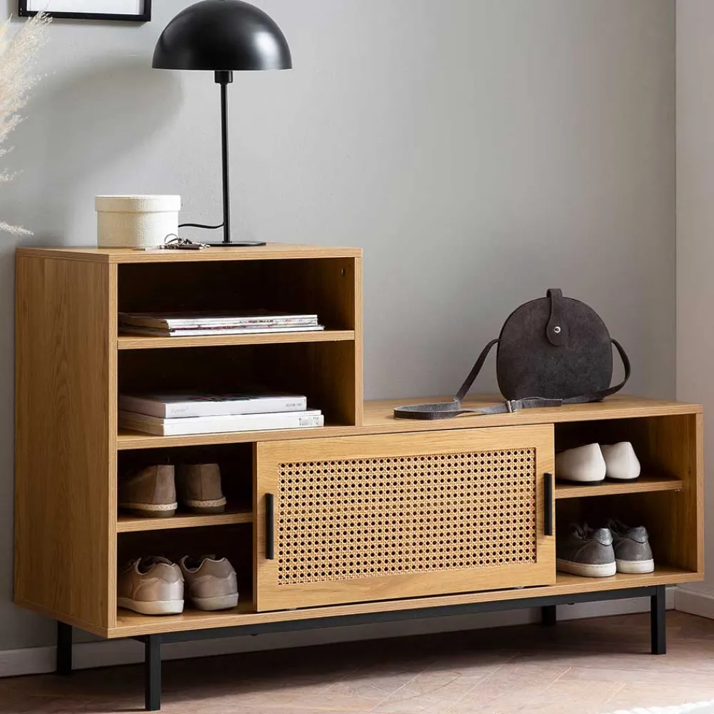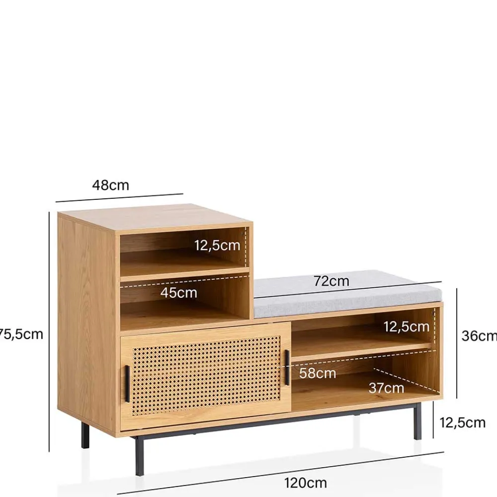 - Schicke Garderobenbank in Eichefarben und Schwarz im angesagten Skandi-Stil