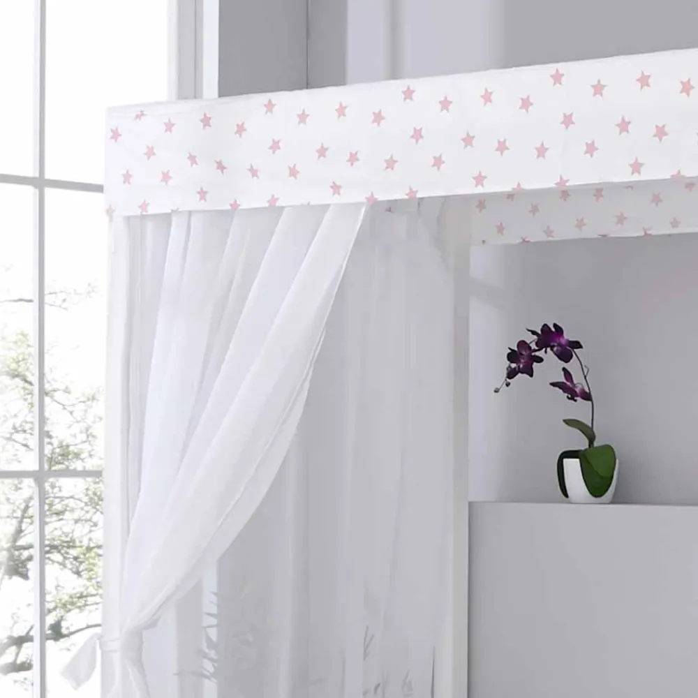 - Toller Himmelbettaufbau inklusive Tüll-Textilien (100% Polyester), schließt mit toller Sternbordüre ab (100% Baumwolle)