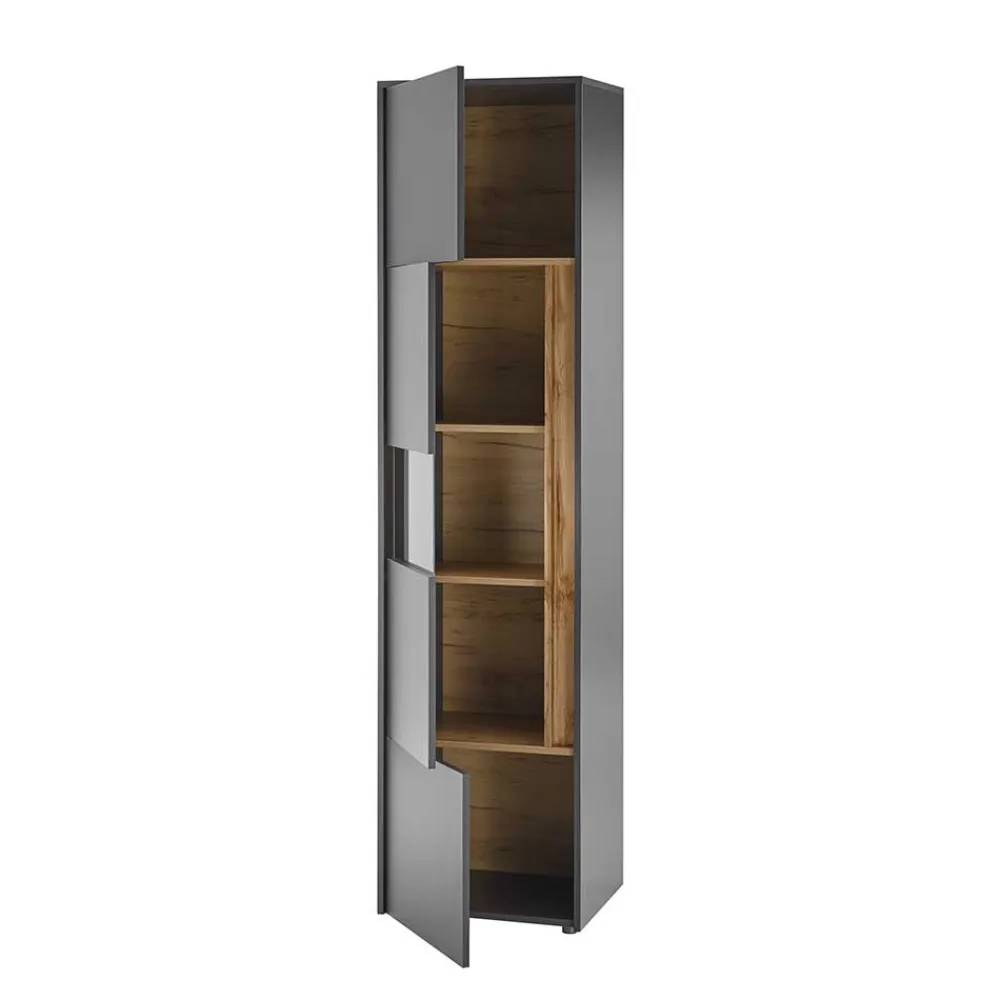- Attraktive Vitrine in Anthrazit und Wildeichefarben