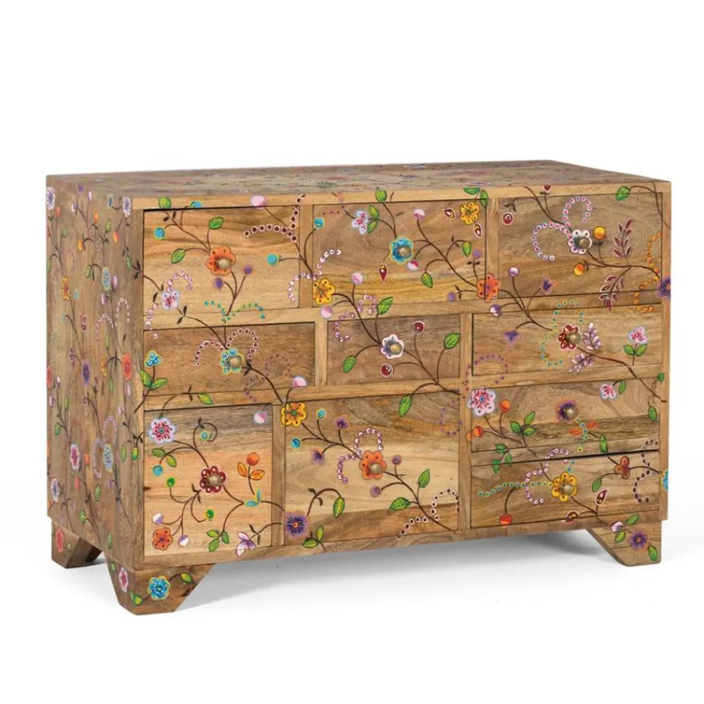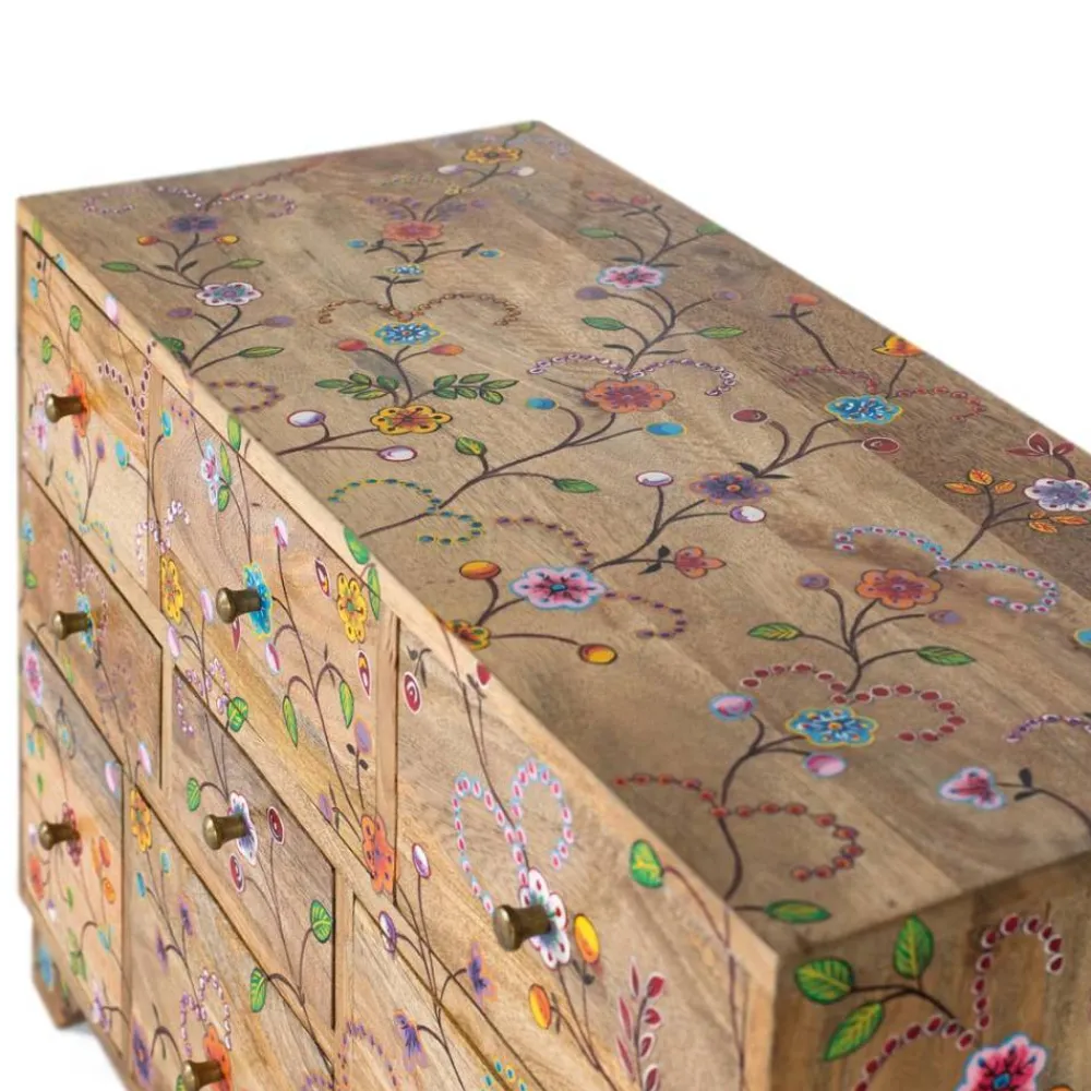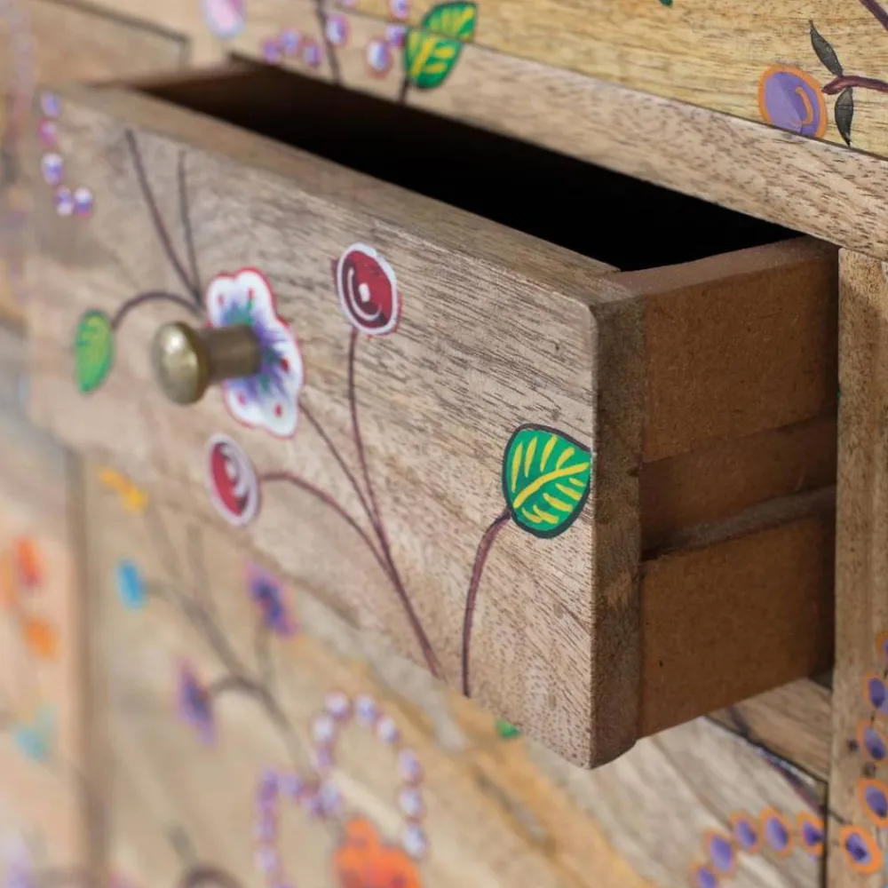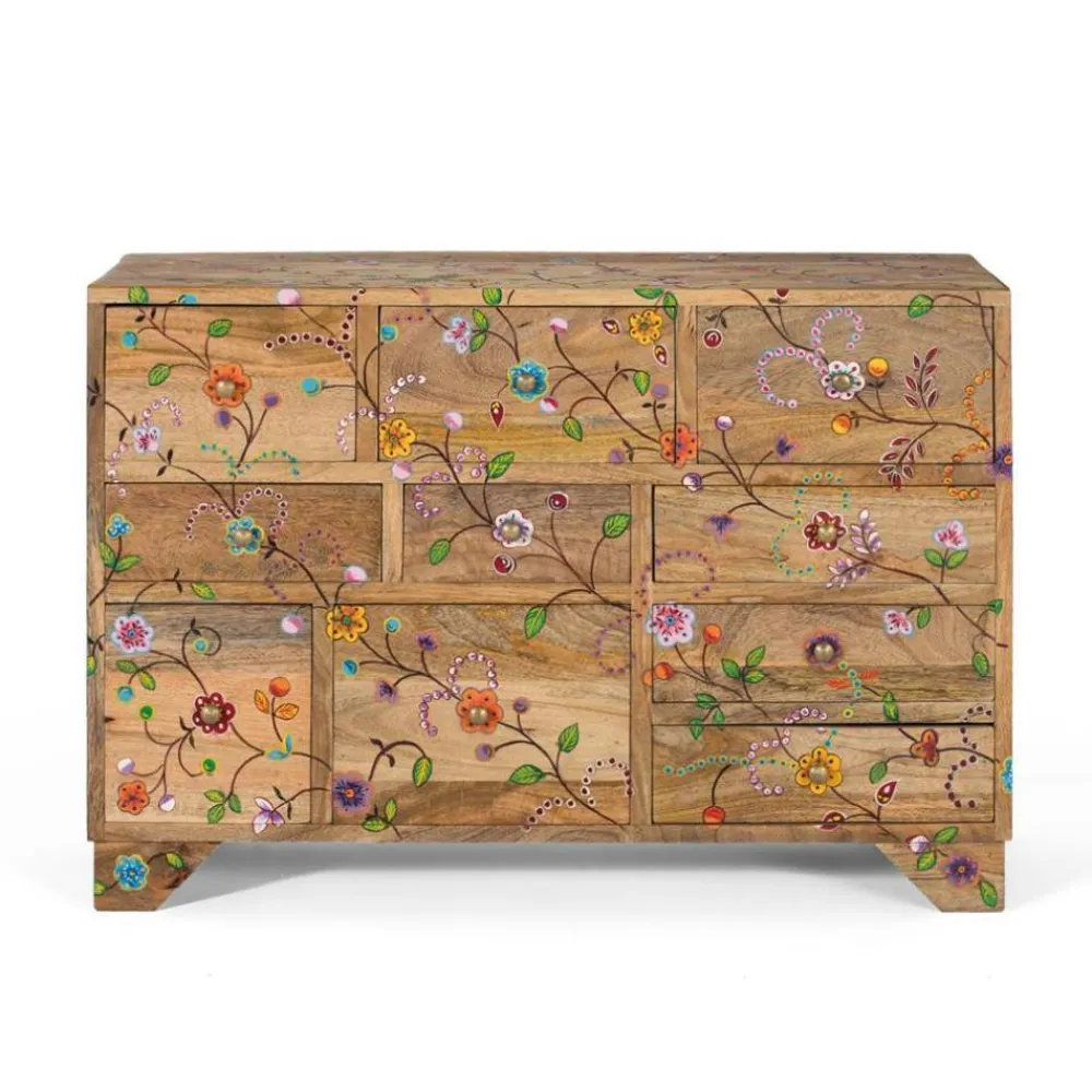 - Hübsche Kommode in Holz Naturfarben und Bunt