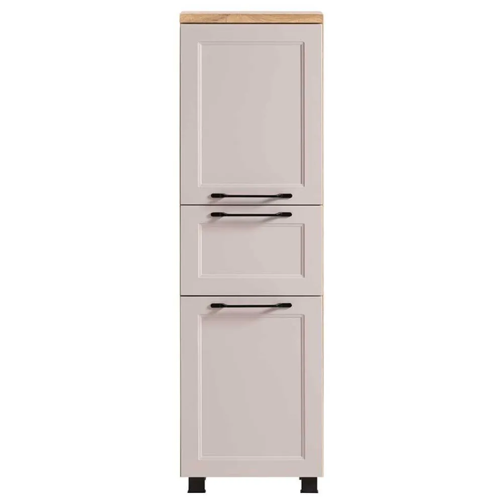 - Hochwertiger Badschrank in Hellgrau und Wildeichefarben