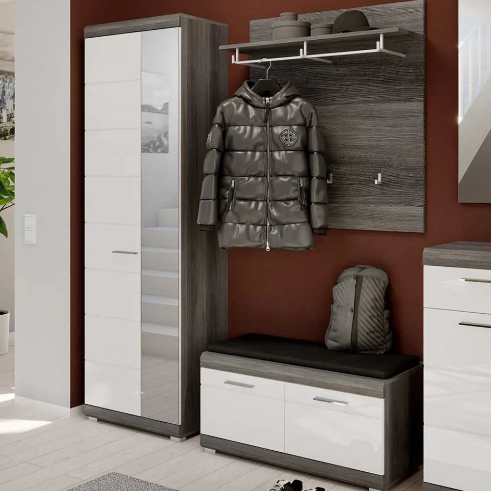 - Dezente Garderobenmöbel in Weiß und Rauchgrau