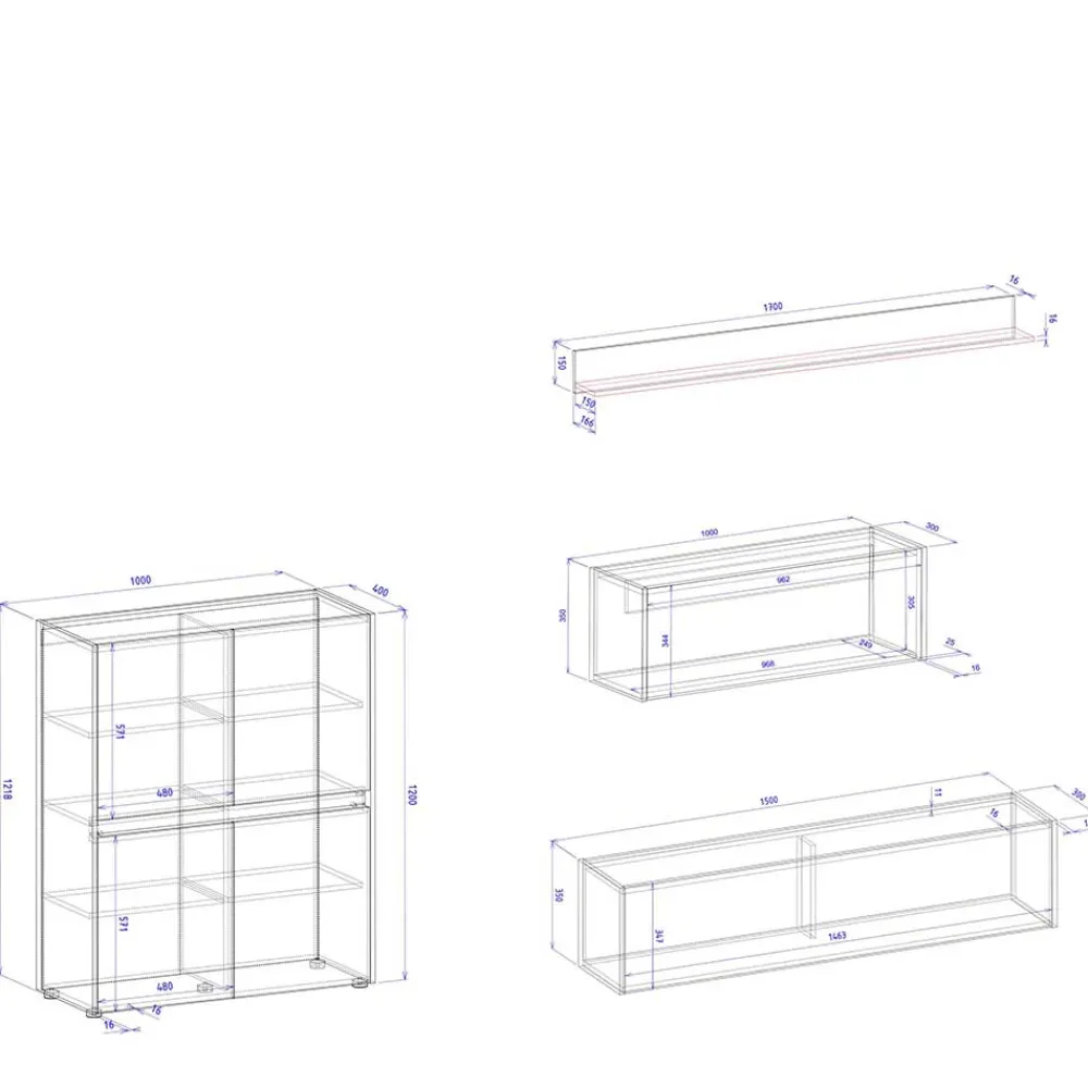 - Maximale Belastbarkeit: Einlegeböden je 5 kg, Oberboden 25 kg