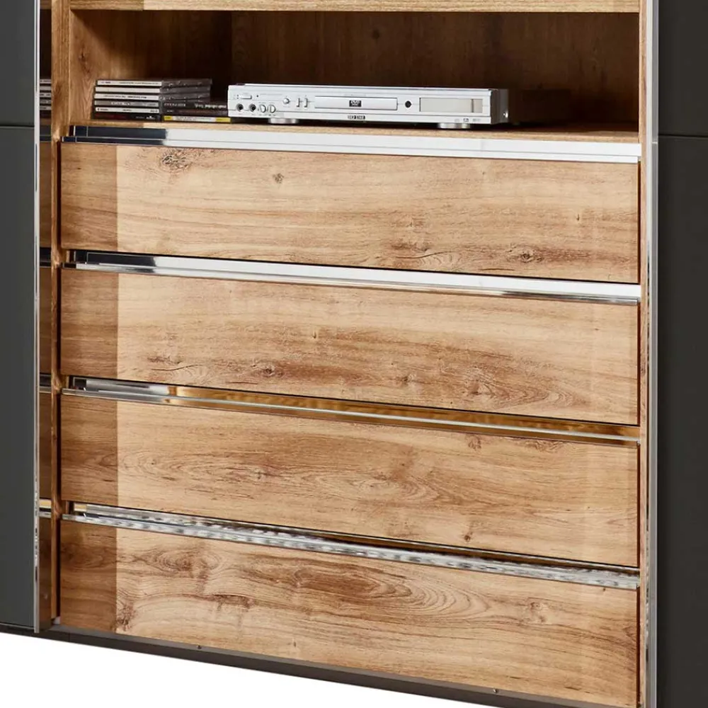 - Exklusiver Kleiderschrank in Plankeneiche Holzoptik und Dunkelgrau