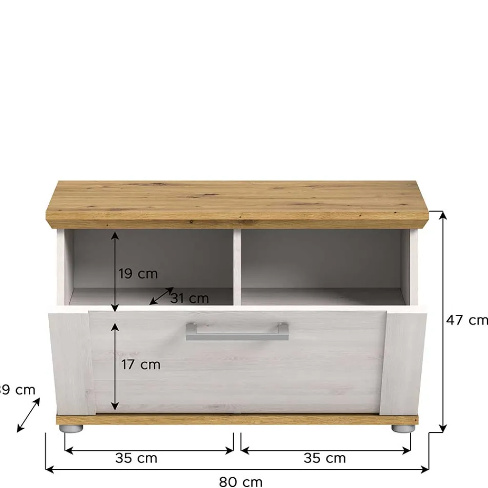 - Zweckmäßige Schuhbank in Holzoptik Lärche Weiß und Wildeichefarben
