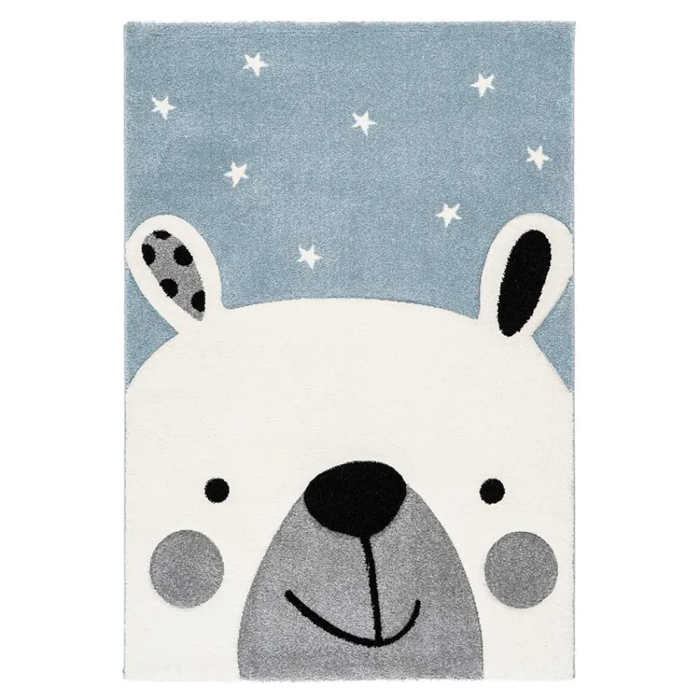 - Stilvoller Kinderteppich in Hellblau, Weiß, Grau und Schwarz