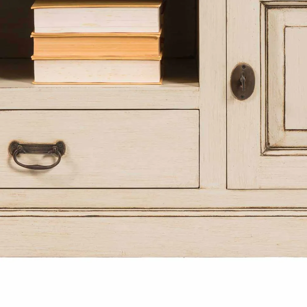 - Oberfläche in Cremeweiß lackiert und mit Antik-Finish veredelt
