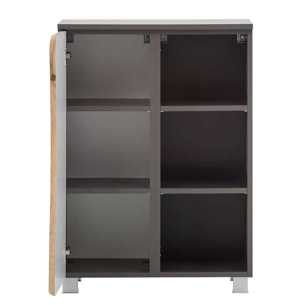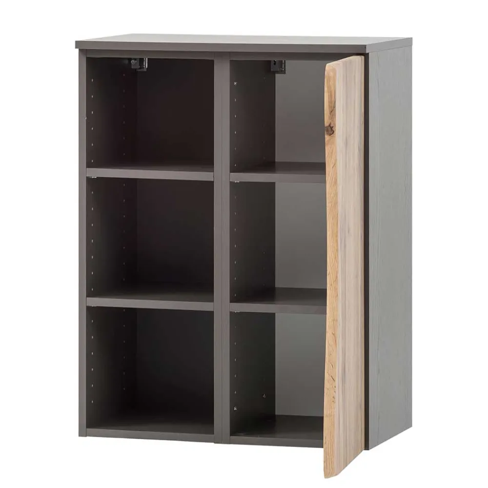 - Bad Unterschrank in Dunkelgrau und Wildeichefarben mit Baumkante