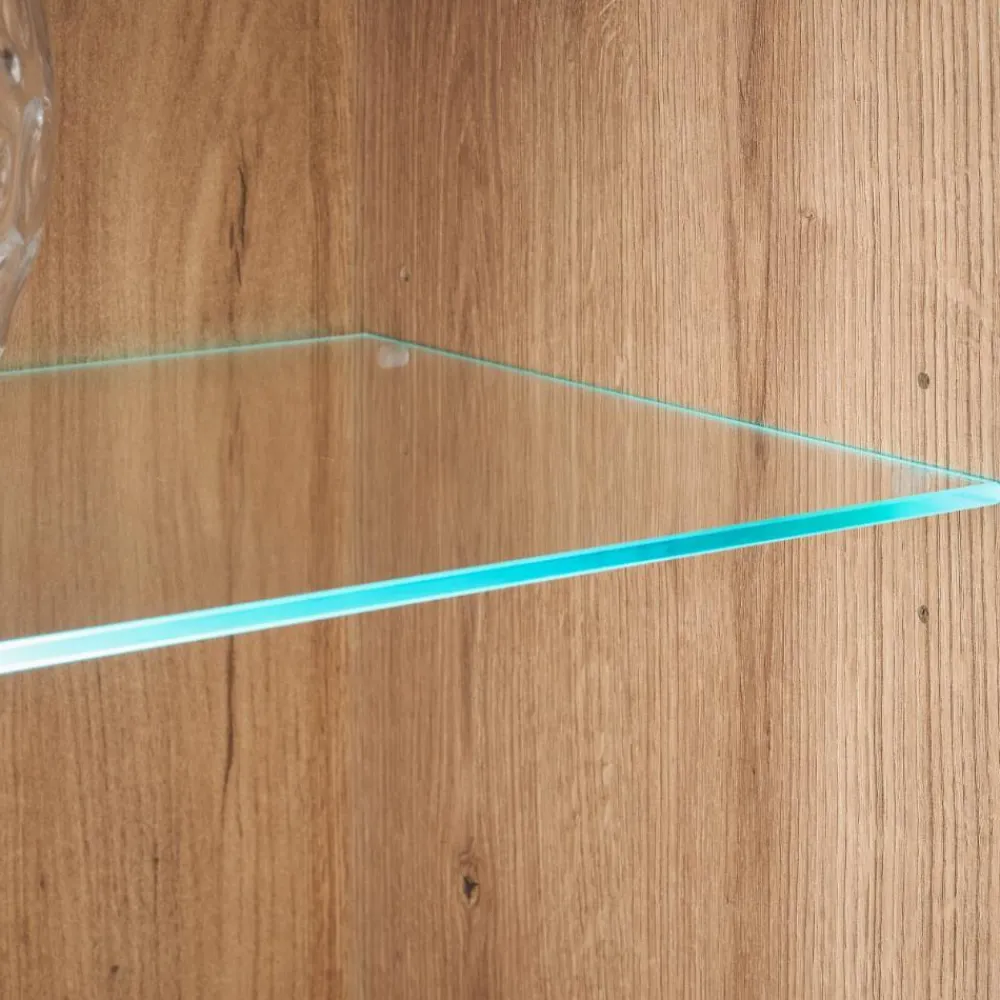 - Innen ein Glasboden und zwei Konstruktionsböden (links) und drei Einlegeböden (rechts)