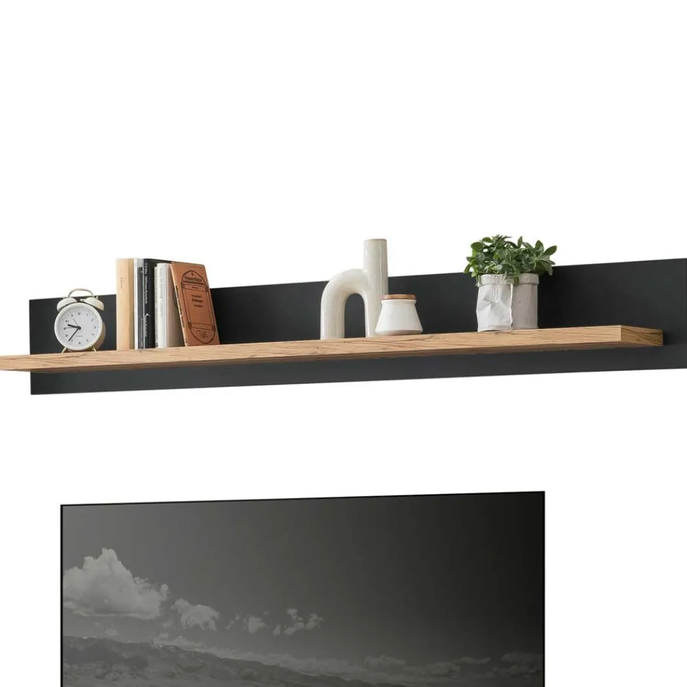 - Klasse Wohnwand in Anthrazit und Wildeichefarben