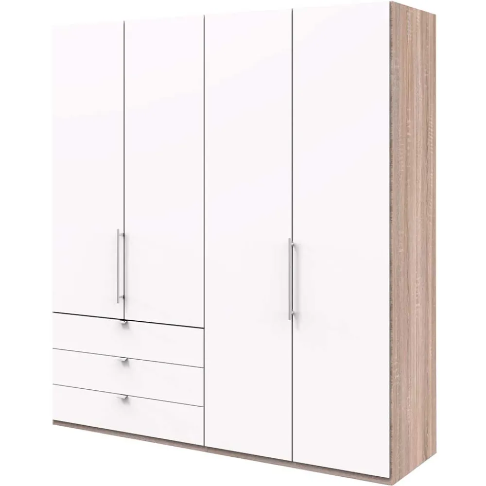 - Topaktueller Kleiderschrank in Weiß und Eiche Sägerau