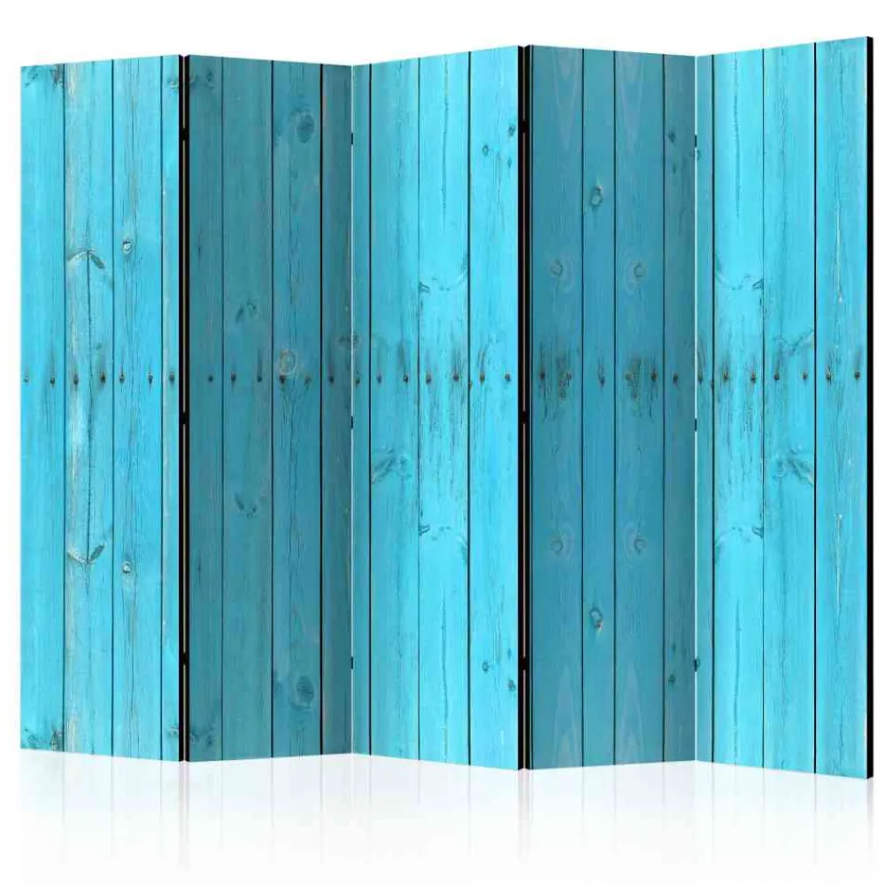 - Stabiler Paravent in türkisem Holzdekor