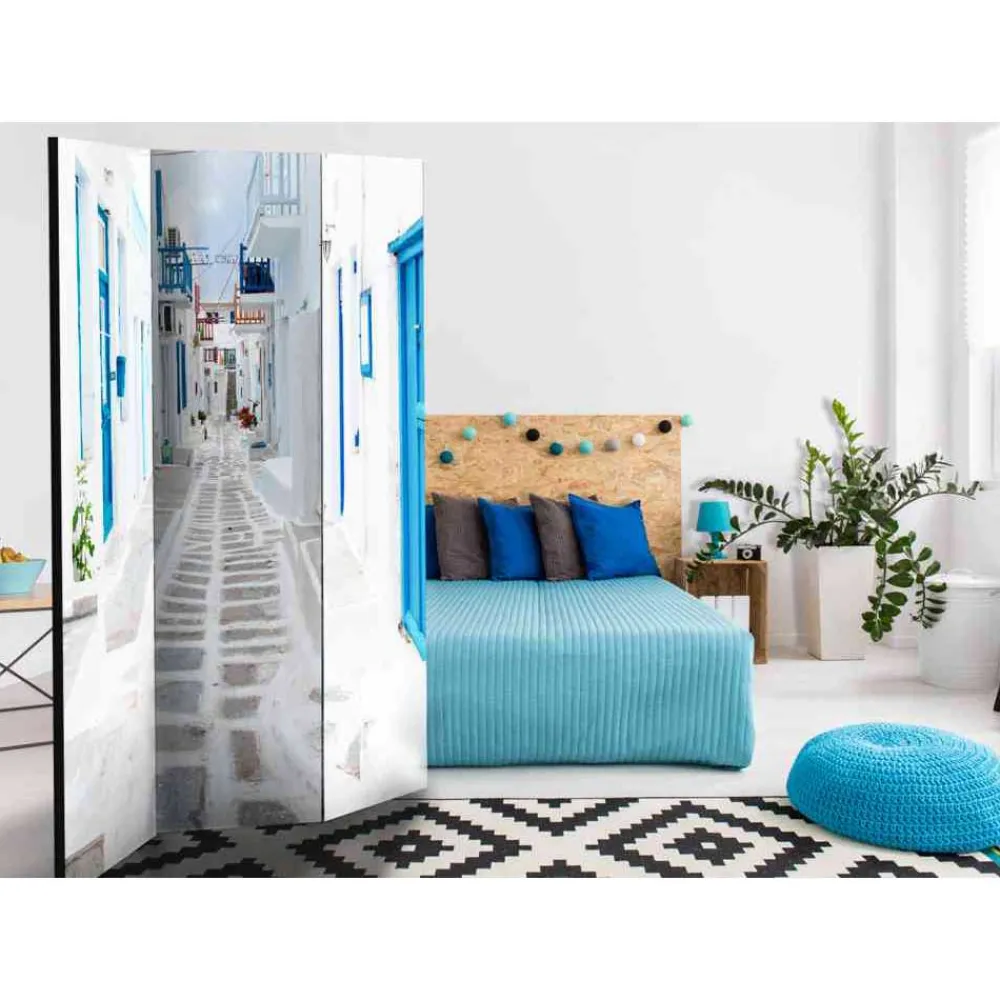 - Eindrucksvoller Paravent in Weiß und Blau