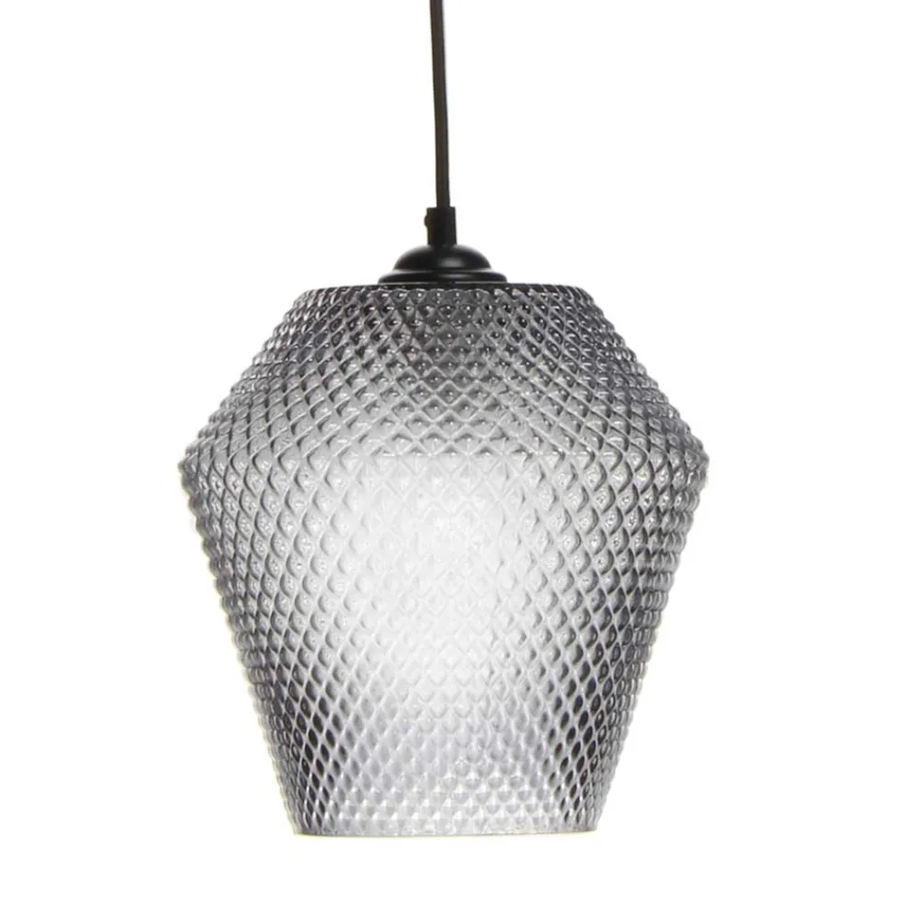 - Lampenschirmaus dekorativem, grau getöntem Glas mit plastischer Struktur