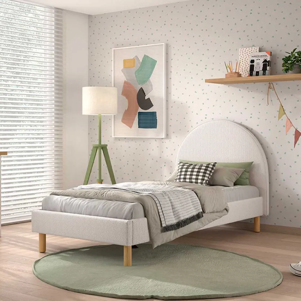 - Harmonisches Bett in Weiß und Holz Naturfarben