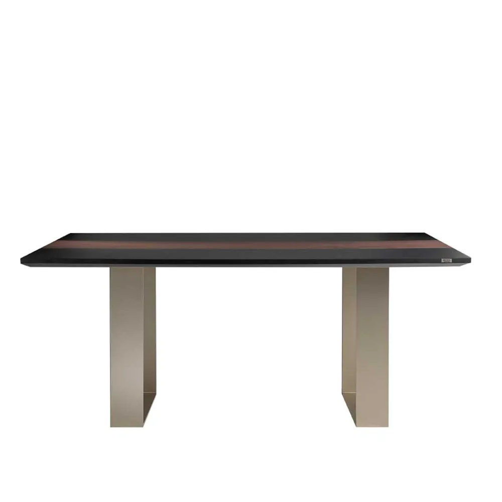 - Außergewöhnlicher Esstisch in Schwarz, Nussbaum- und Nickelfarben