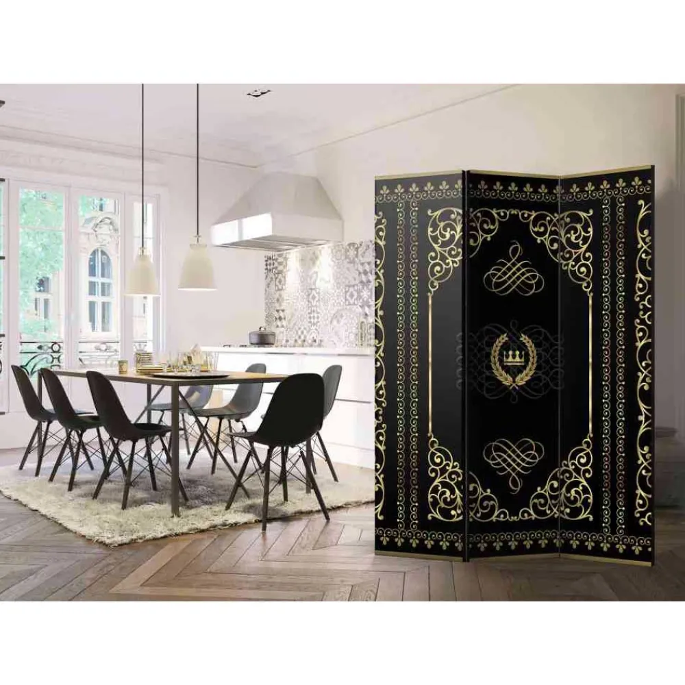 - Ausgefallener Paravent in Schwarz und Goldfarben