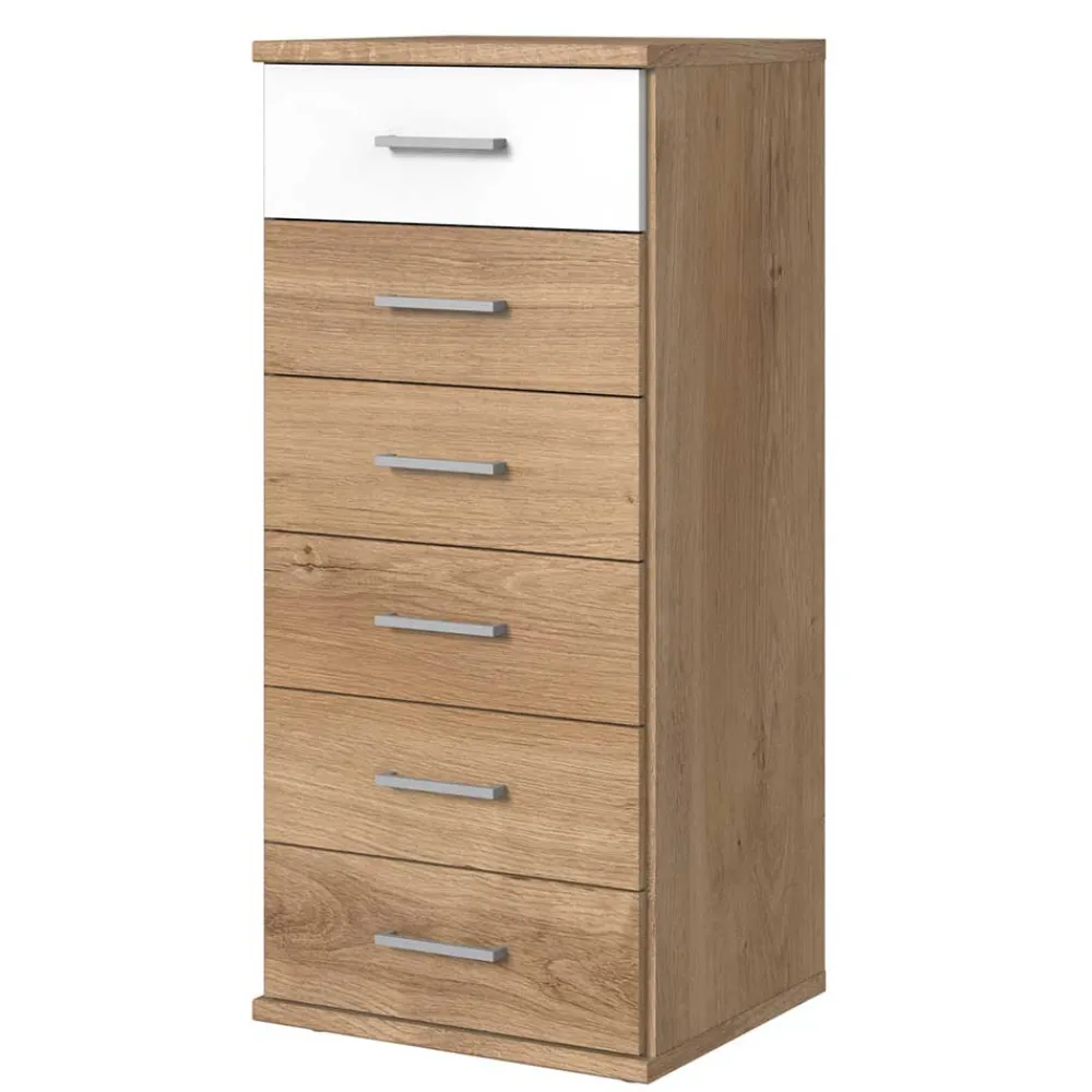 - Platzsparende Kommode in Eichefarben und Weiß