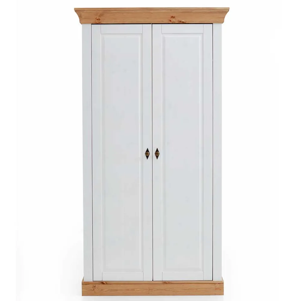 - Stilvoller Kinderzimmerschrank in Weiß und Kiefer Laugenfarben