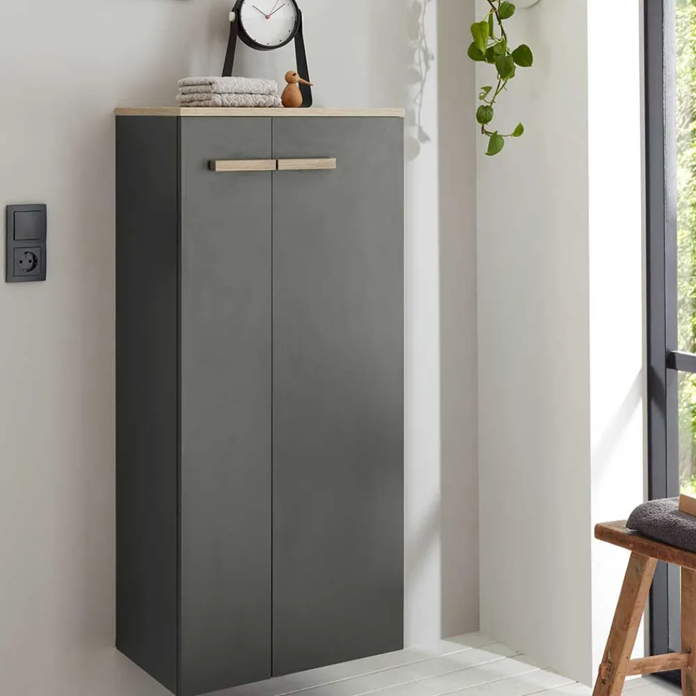 - Trendiger Badschrank in Anthrazit und Eichefarben