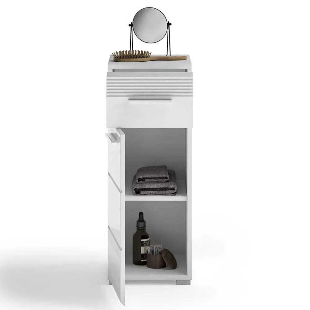 - Aus MDF, Spiegelglas (Front) und Spanplatte (Korpus) gefertigt