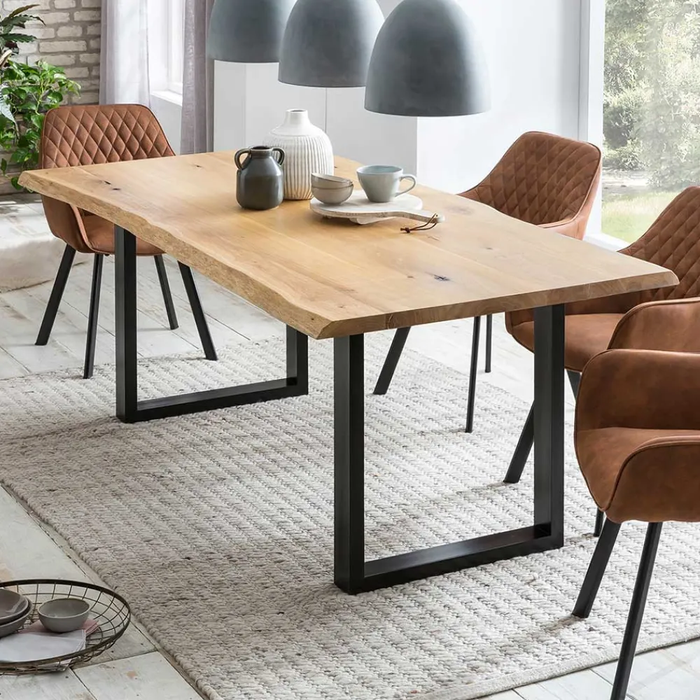 - Charakteristischer Esstisch in Eichefarben und Schwarz