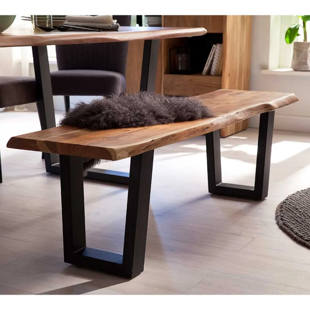 - Rustikale Esstischbank in Akazie Naturfarben und Anthrazit