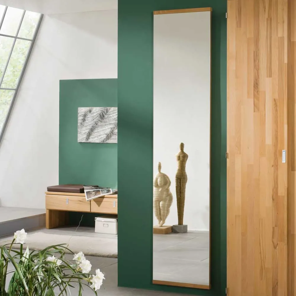 - Vielseitiger Garderoben Spiegel mit kernbuchefarbenem Rahmen