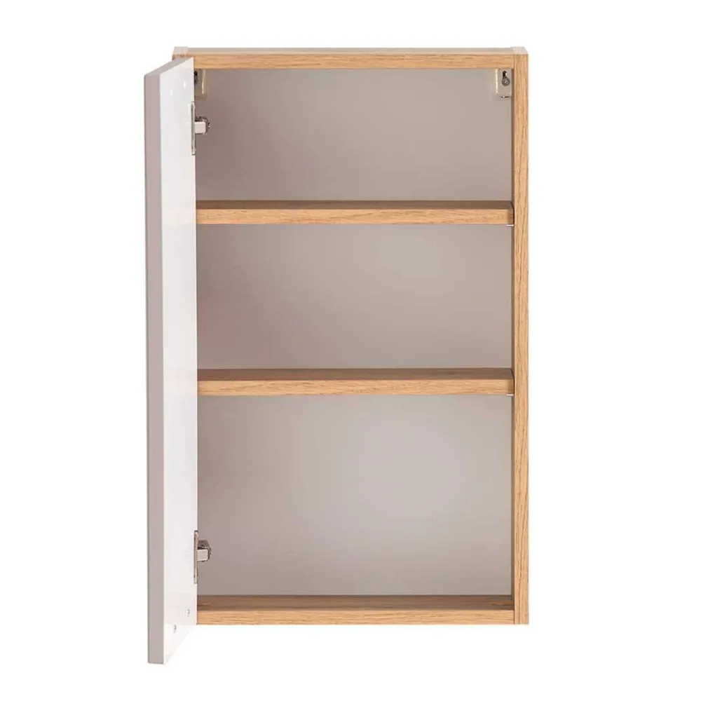 - Praktischer Bad Oberschrank in Hellgrau und Wildeichefarben