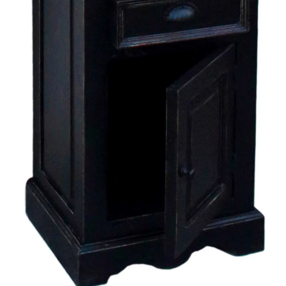 - Lackierte Oberflächen mit Antik Finish in Schwarz, Deckplatten aus Massivholz honigfarbig lackiert