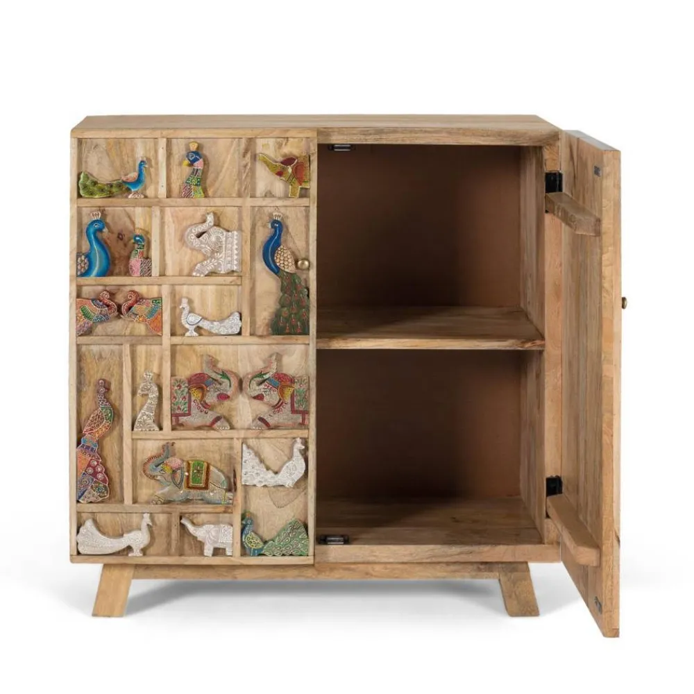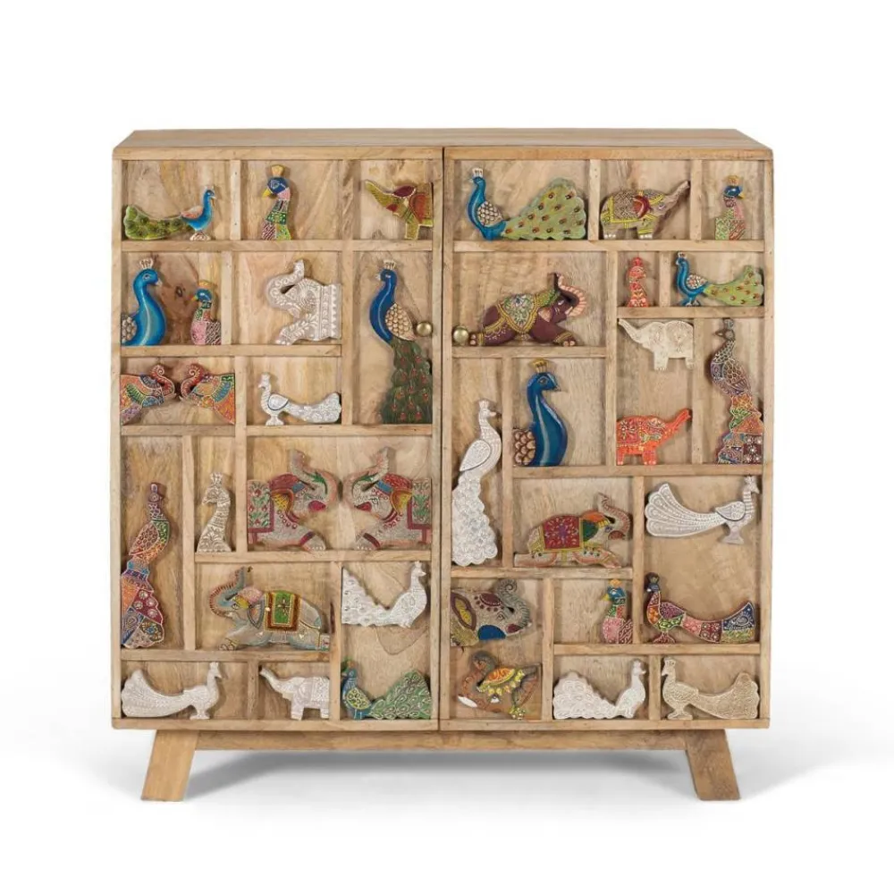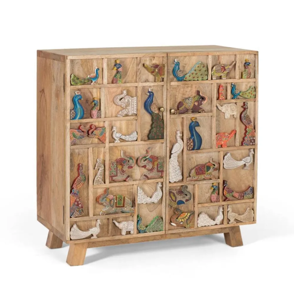- Außergewöhnliche Kommode in Mangoholz Naturfarben und Bunt