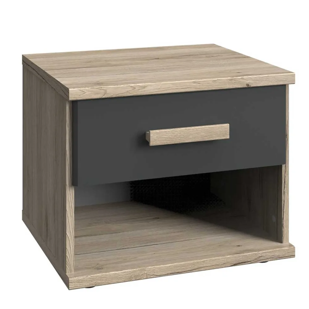 - Stylische Nachtkommode in Weiß und Eiche San-Remo