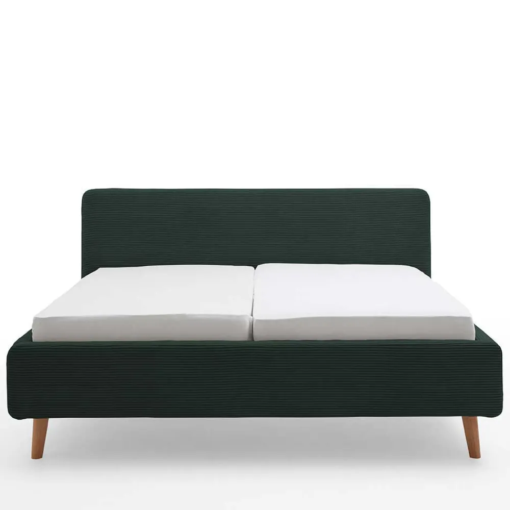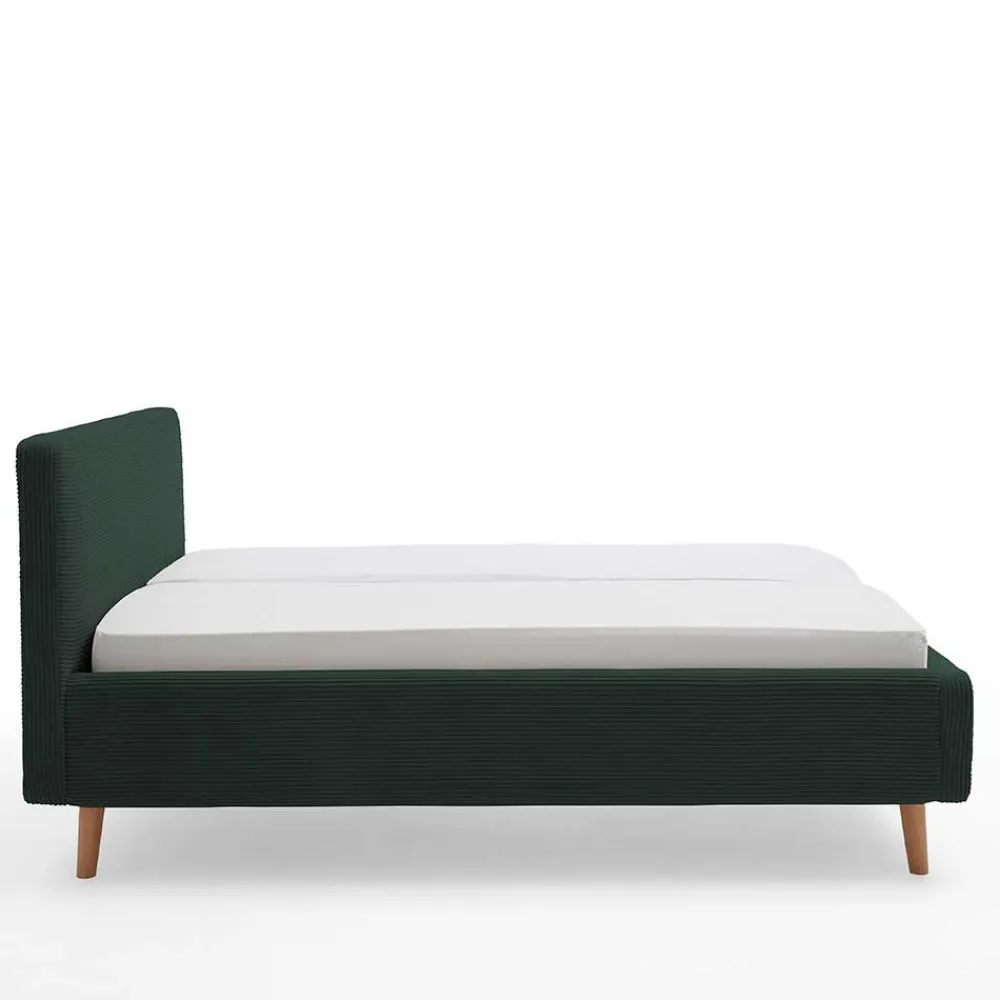 - Angesagtes Polsterbett in Dunkelgrün und Eichefarben