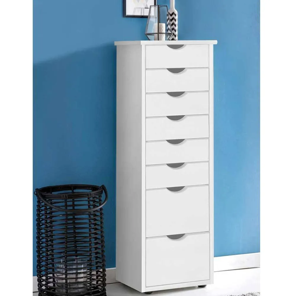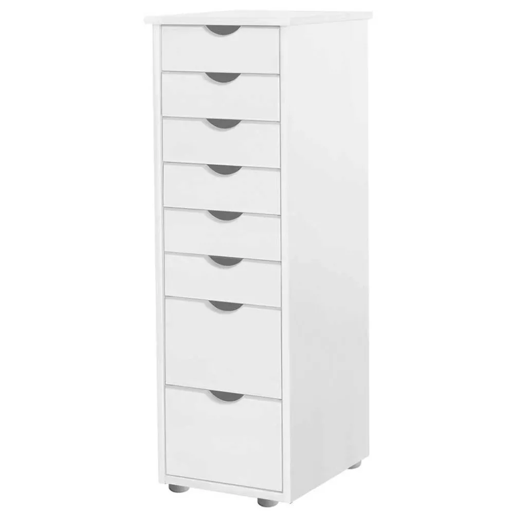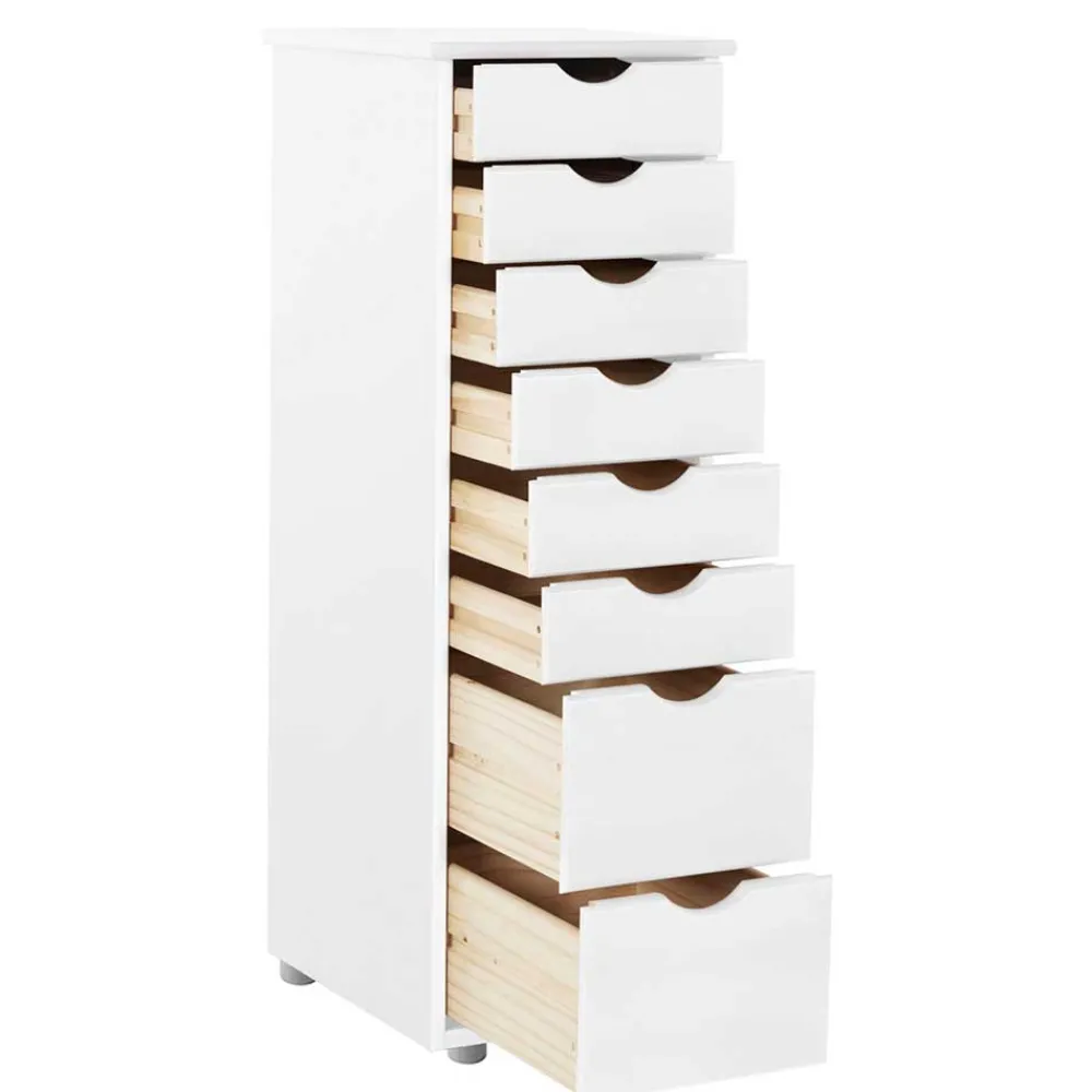 - Acht Schubladen in zwei Größen mit Holzauszug