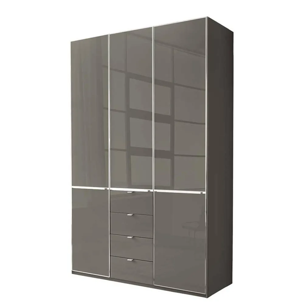 - Oberfläche der Front mit Glas beschichtet, Korpus foliert, Innendekor Silber-Grau gestreift foliert