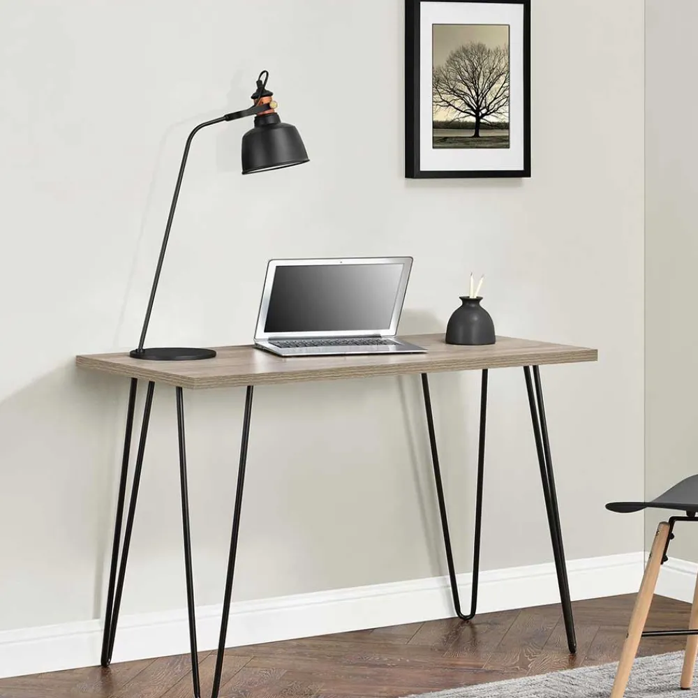 - Reduzierter Schreibtisch in Eichefarben und Schwarz