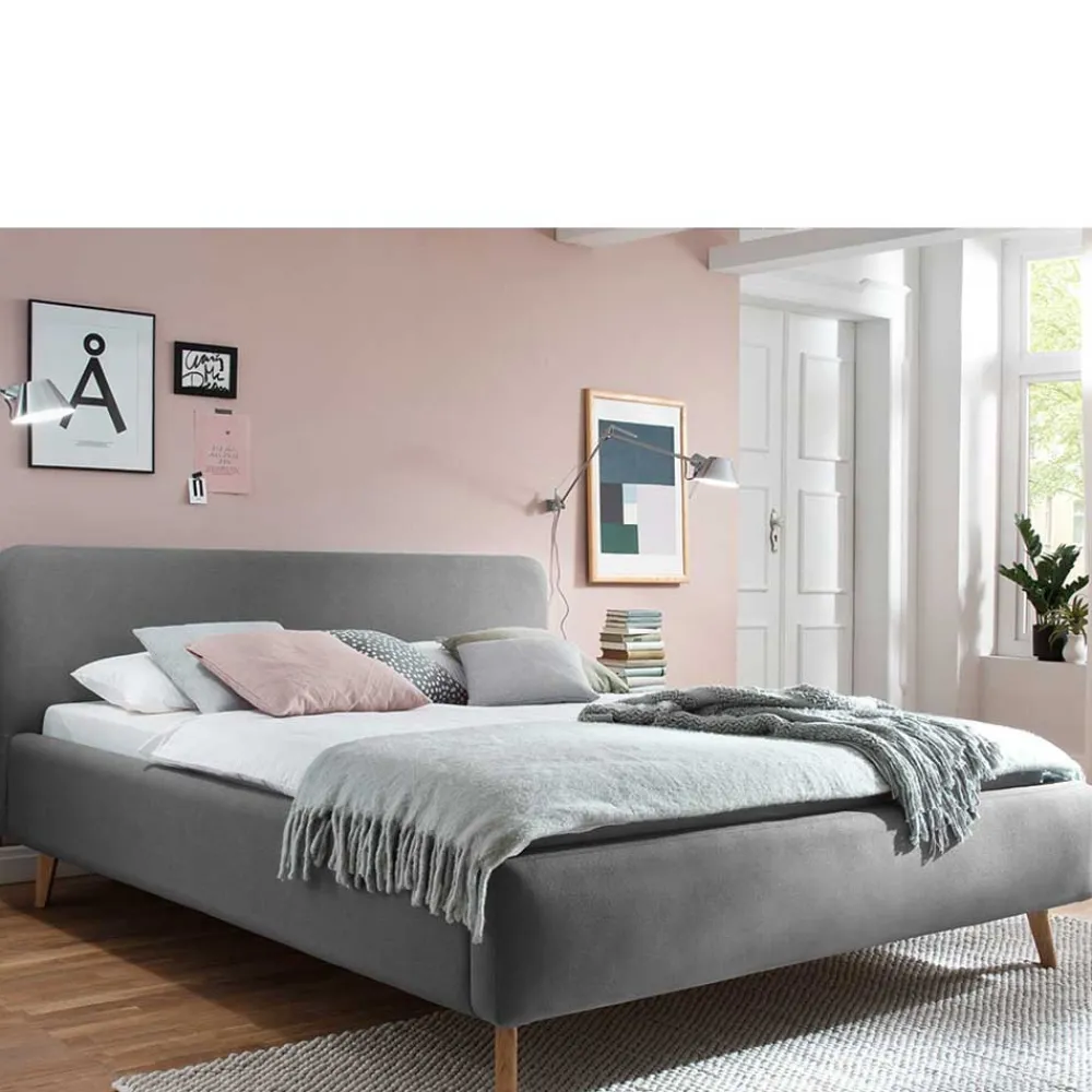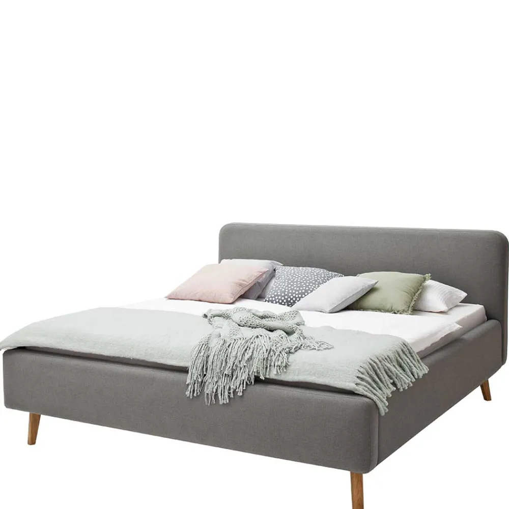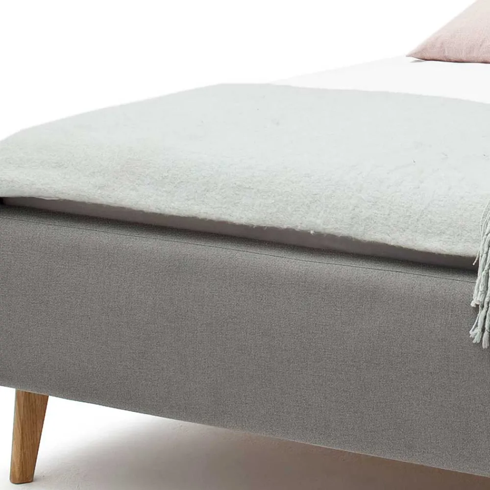 - Elegantes Polsterbett in Hellgrau und Eichefarben