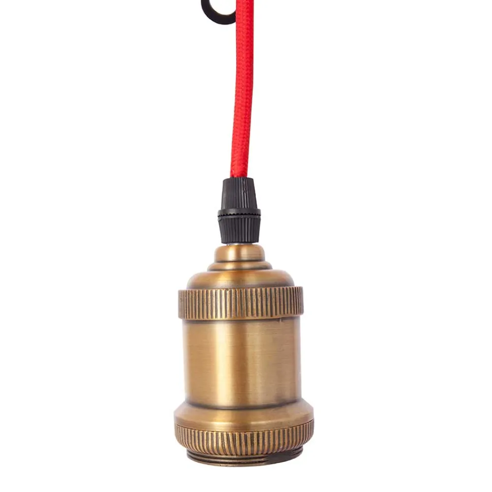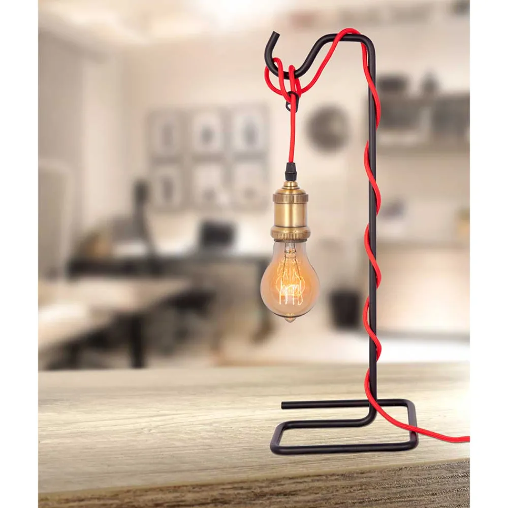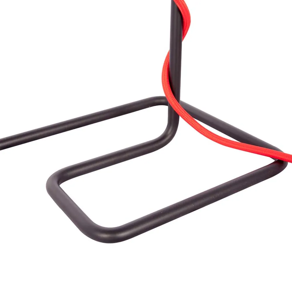 - Ein rotes Kabel wird individuell um den Lampenhalter geschlungen