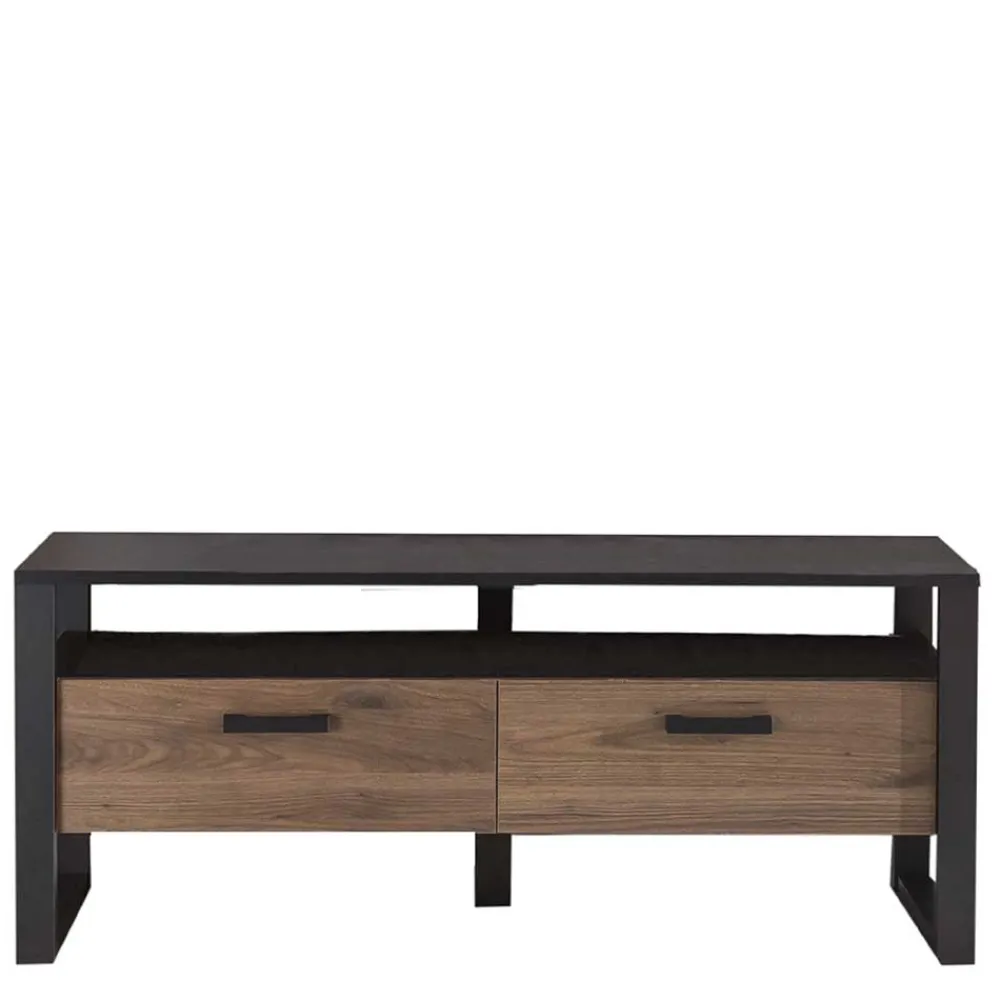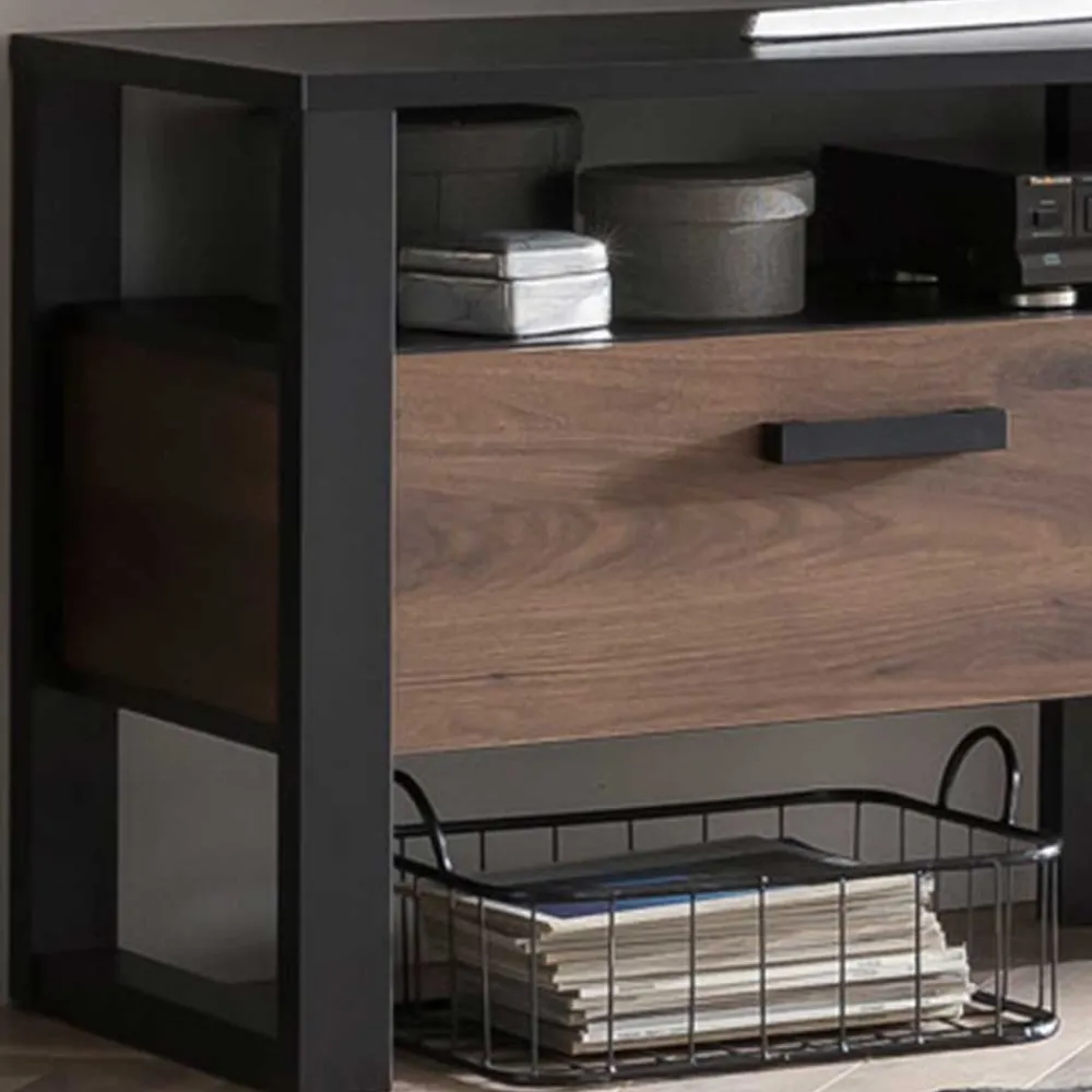 - Kompaktes TV Board in Nussbaumfarben und Schwarz