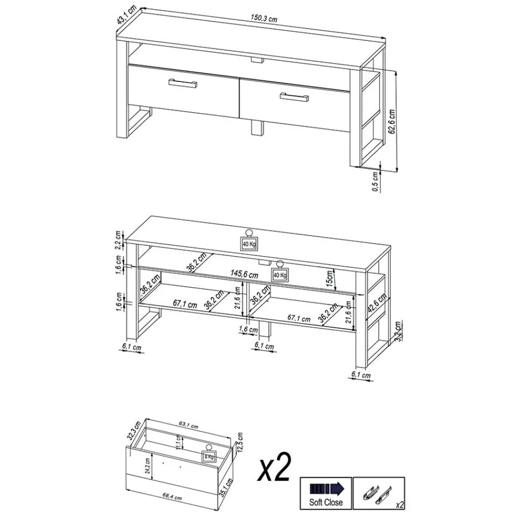 - 151 cm Breit, 63 cm Hoch, 44 cm Tief