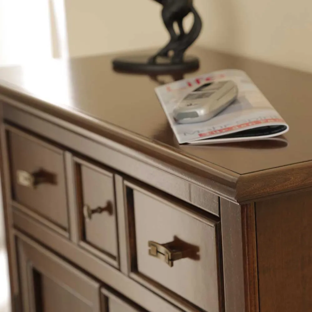- Walnussbaumfarbig antik gebeizte und lackierte Oberflächen, von Hand poliert für einen unikaten Effekt